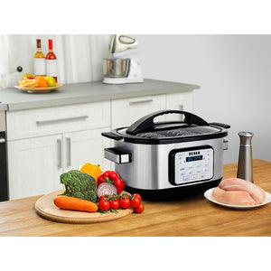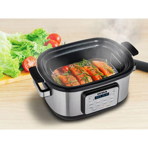 Možnosť zapekania v rúreVnútorná nádoba disponuje objemom 6 litrov a jej hlavnou výhodou je to, že ju možno vybrať, takže pokiaľ je treba chystaný pokrm zapiecť, bez starostí ju môžete vložiť do rúry, majte však na pamäti, že len do teploty 200 °C. V neposlednom rade určite oceníte aj možnosť vložiť vnútorný hrniec vrátane pokrievky z tvrdeného skla do umývačky riadu, ušetríte si tak čas ručným umývaním, ktorý môžete venovať rodine alebo odpočinku. |