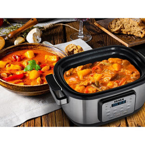 Multifunkčný elektrický hrniecTeslá MultiCook M80 DeluxeUvarte si každý deň iné chutné a zdravé jedlo, pokojne aj pre celú rodinu s použitím len jediného multifunkčného hrnca Tesla. Ponúka vám niekoľko možností varenia od pomalého, cez funkciu restovania, vyprážania, varenia v pare, až po funkciu jogurtovača. Spoľahlivo tak uspokojíte ako deti, tak dospelých, ale aj vyznávačov zdravého životného štýlu. |