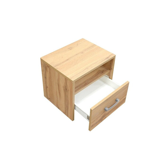 Nočný stolík LeticiaNočný stolík Leticia je vhodným výrobkom do vašej spálne. Moderný dizajn ide ruka v ruke s jednoduchosťou a praktickosťou. Dlhú životnosť nábytku zaručujú kvalitné materiály. Tento nočný stolík sa rýchlo stane vaším verným spoločníkom. Bude vám po ruke kedykoľvek, keď budete potrebovať odložiť knihu, mobil alebo okuliare. Navyše disponuje zásuvkou, do ktorej schováte všetko potrebné a otvorenou policou, ktorú uvítate pre ľahkú prístupnosť. Povrch je ľahko umývateľný, postačí vám látková handrička a neagresívny saponát. Stolík sa hodí do každej spálne. Vďaka svetlému dekoru je možné stolík perfektne zladiť napríklad s béžovou, krémovou alebo inými svetlými odtieňmi. Inšpiráciu nájdete v článku ako zladiť farby nábytku.