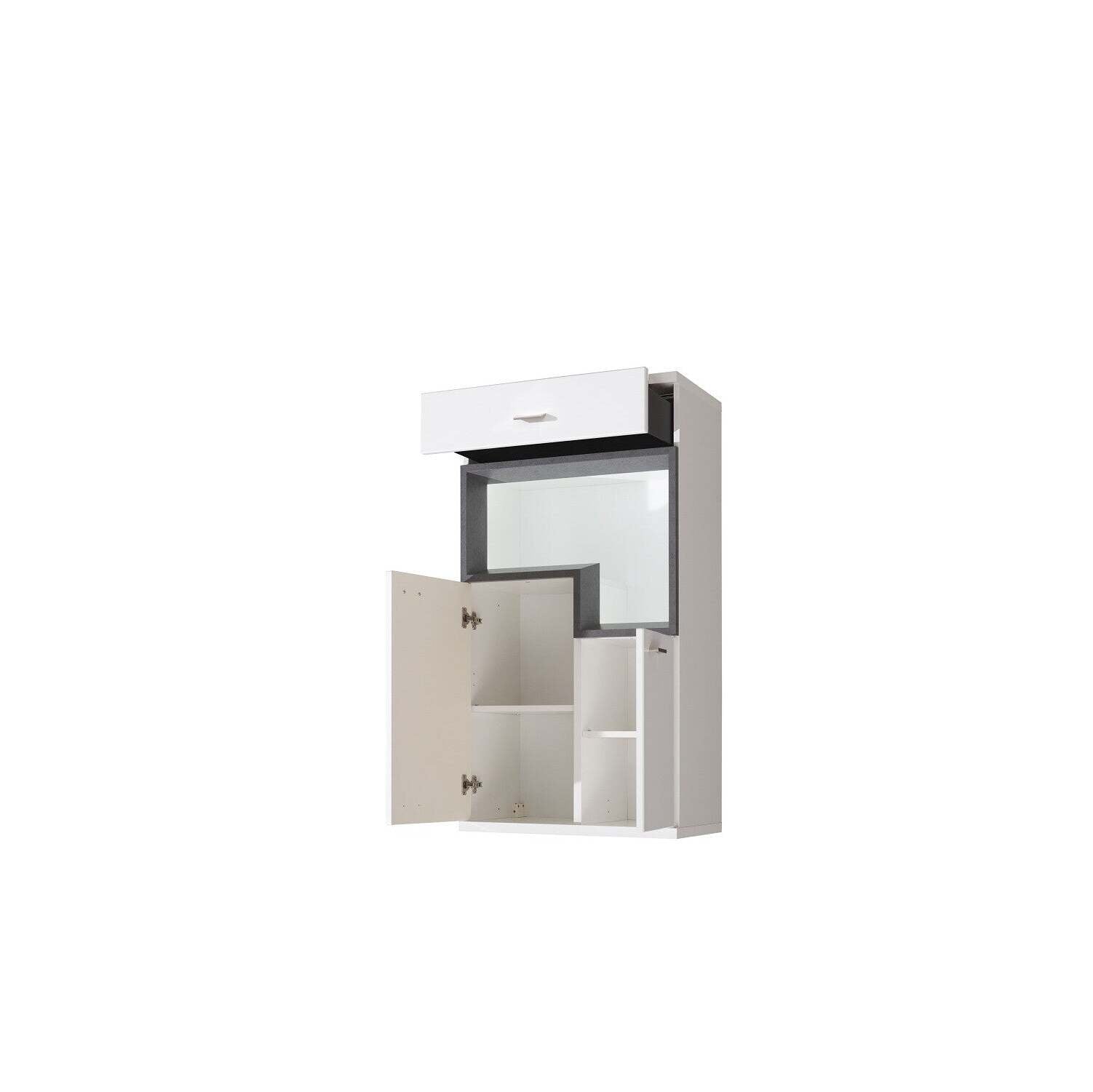 Moderný a originálny štýlVitrína Arctic je skvelým doplnkom obývačkovej steny. Práve jednotlivými detailmi a vyhotovením sa stáva jedinečnou a originálnou súčasťou vašej obývačky. Vitrína do obývačky Arctic disponuje integrovaným LED osvetlením, ktoré určite oceníte vďaka dlhej životnosti. Ďalšou skvelou výhodou je úspora energie. |