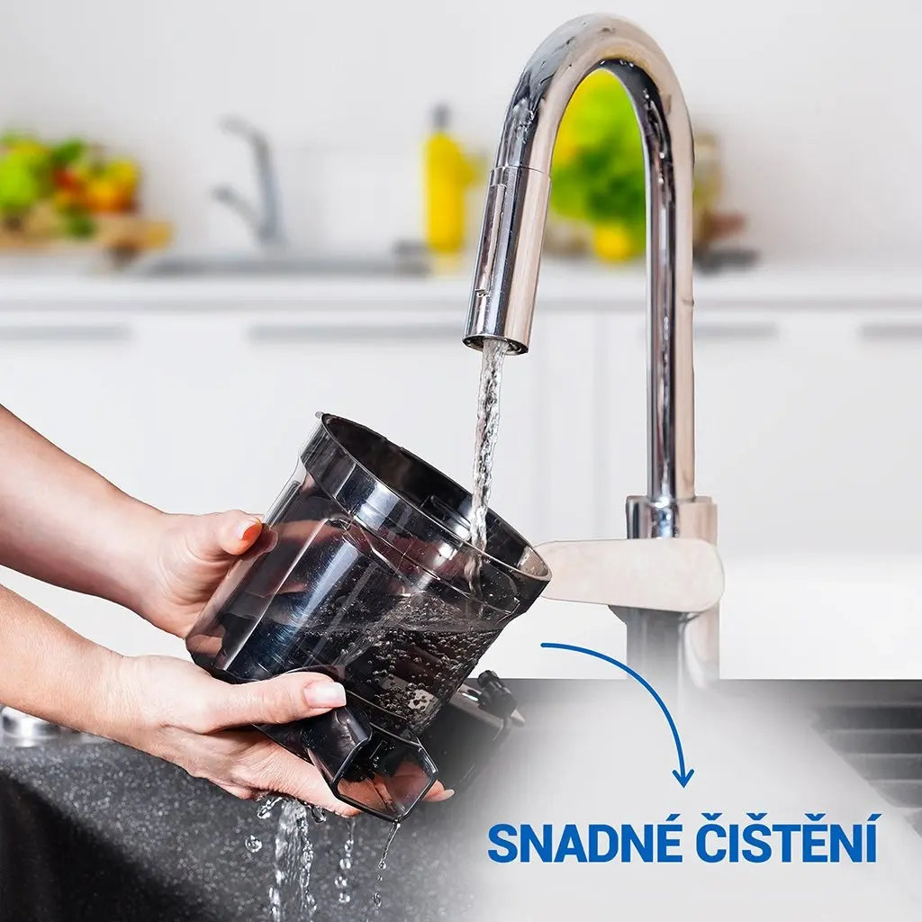 Nízkootáčkový skrutkový odšťavovačTesla SlowJuicer SJ770 XXL DeluxeMáte chuť na chutné a zdravé ovocné šťavy, ale odrádza vás rastúca cena džúsov? Pripravte si oveľa kvalitnejšie a čerstvejšie ovocné, bylinkové a zeleninové šťavy v pohodlí domova a oveľa lacnejšie. Nízkootáčkový šnekový mechanizmus odšťavovača TESLA SlowJuicer SJ770 XXL Deluxe s rýchlosťou 40-65 otáčok za minútu zachováva maximálne množstvo vitamínov, vlákniny a stopových prvkov. Pri pomalom lisovaní za studena totiž vzniká menej tepla, čo chráni dôležité živiny v ovocí a zelenine. |