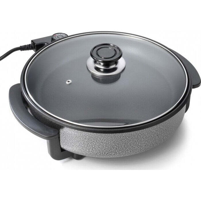 Praktické funkcieV tejto elektrickej panvici môžete piecť a vyprážať čokoľvek, od zemiakov až po ryby. Elektrická panvica na pečenie má priemer 30 cm, takže je priam ideálna pre väčšie rodiny. Navyše je vybavená odnímateľným termostatom na šnúre. Povrch je nepriľnavý, takže jeho údržba bude ľahká a rýchla. Vďaka priehľadnému veku bude ľahké prípravu jedla kontrolovať bez toho, aby ste museli s niečím hýbať. Veko obsahuje tiež parný výfuk. |