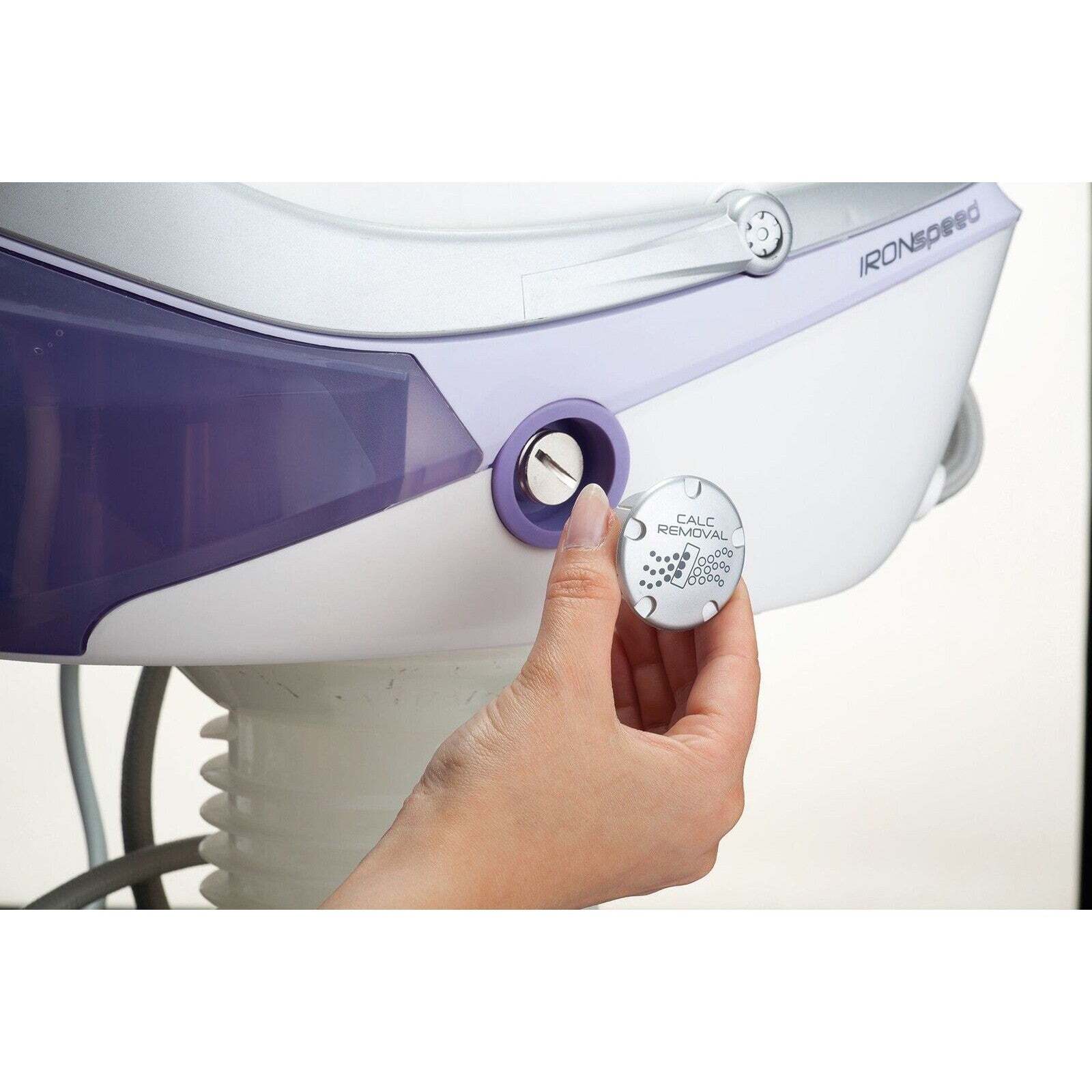 Odvápňovací systémParnému generátoru nechýba odvápňovací systém, ktorý pomocou špeciálnej tablety vodu mäkčí. Parné kanáliky tak nie sú upchávané vodným kameňom a životnosť žehličky je tak oveľa dlhšia. Bojler na vodu je vyrobený z kvalitného nerezového materiálu a je vybavený externým vyhrievycím telesom. Nádrž na vodu má objem 1 l. |