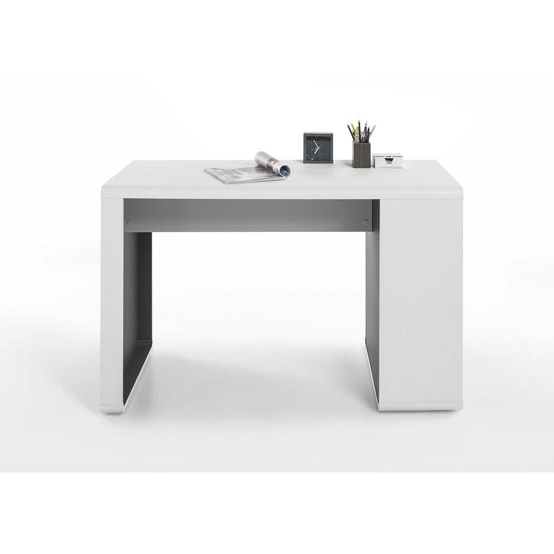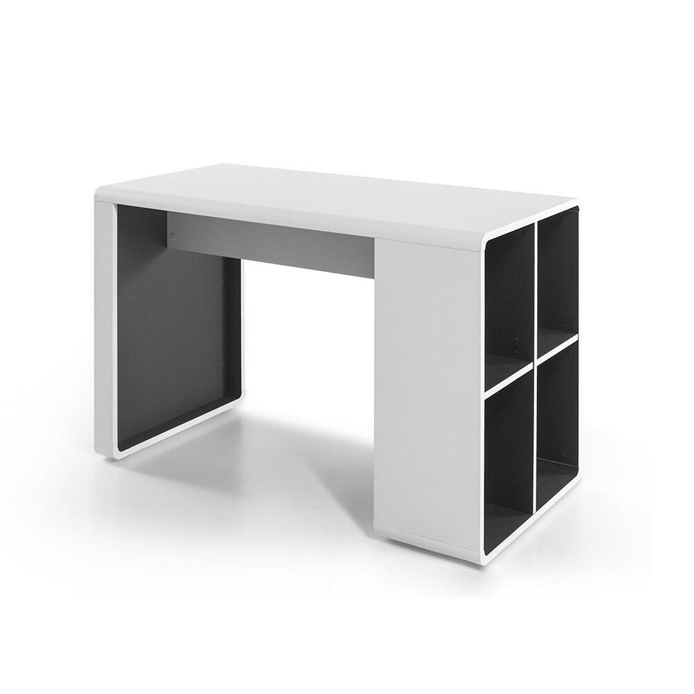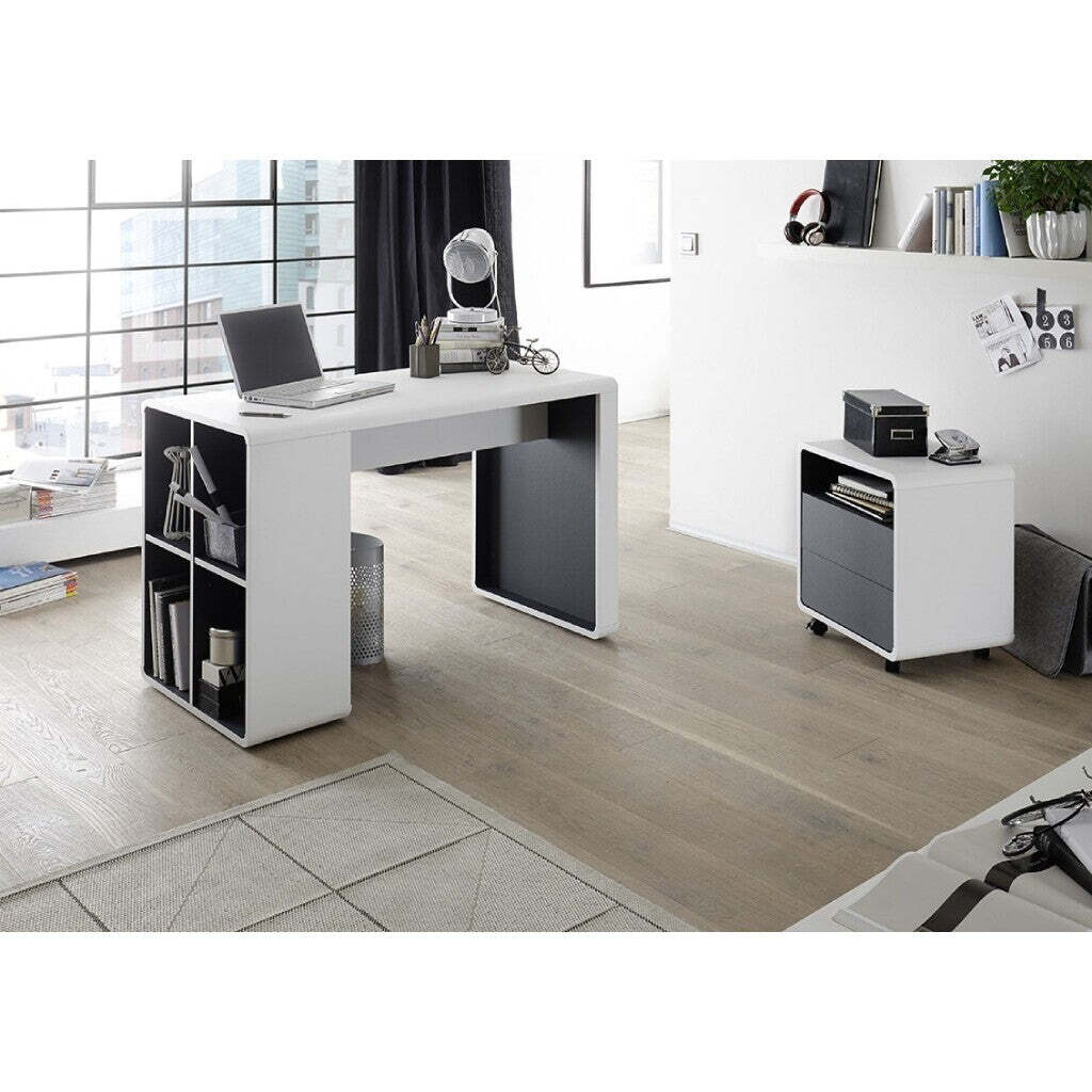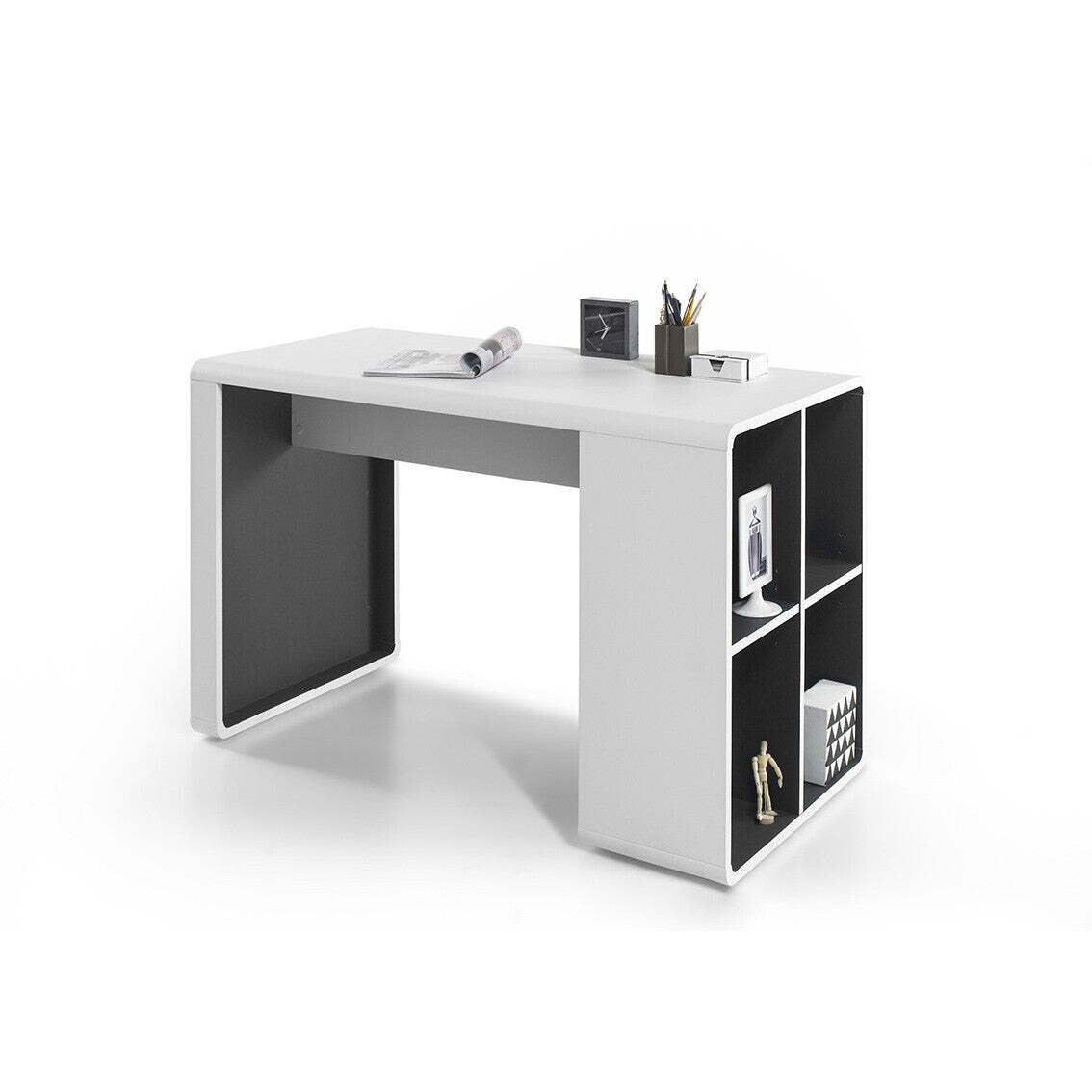 Písací stôl s regálom NaosBiely písací stôl Naos predstavuje vkusný praktický doplnok do vašej pracovne či obývačky. Široká pracovná doska ponúka dostatočný priestor, kde sa nebudete tlačiť a naopak môžete pohodlne pracovať podľa vašej potreby. Stôl disponuje zaujímavým riešením, kedy na bočnej strane stola obsahuje štyri police, kam môžete uložiť všetko, čo je potrebné mať ihneď po ruke. Vďaka svojmu modernému dizajnu a dekoru v bielom a antracitovom vyhotoveníje kancelársky stôl Naos vhodný do takmer každého interiéru. Kancelársky stôl je vyrobený z kvalitných materiálov, ktoré sú nenáročné na údržbu a zaisťujú odolnosť a dlhú životnosť.
