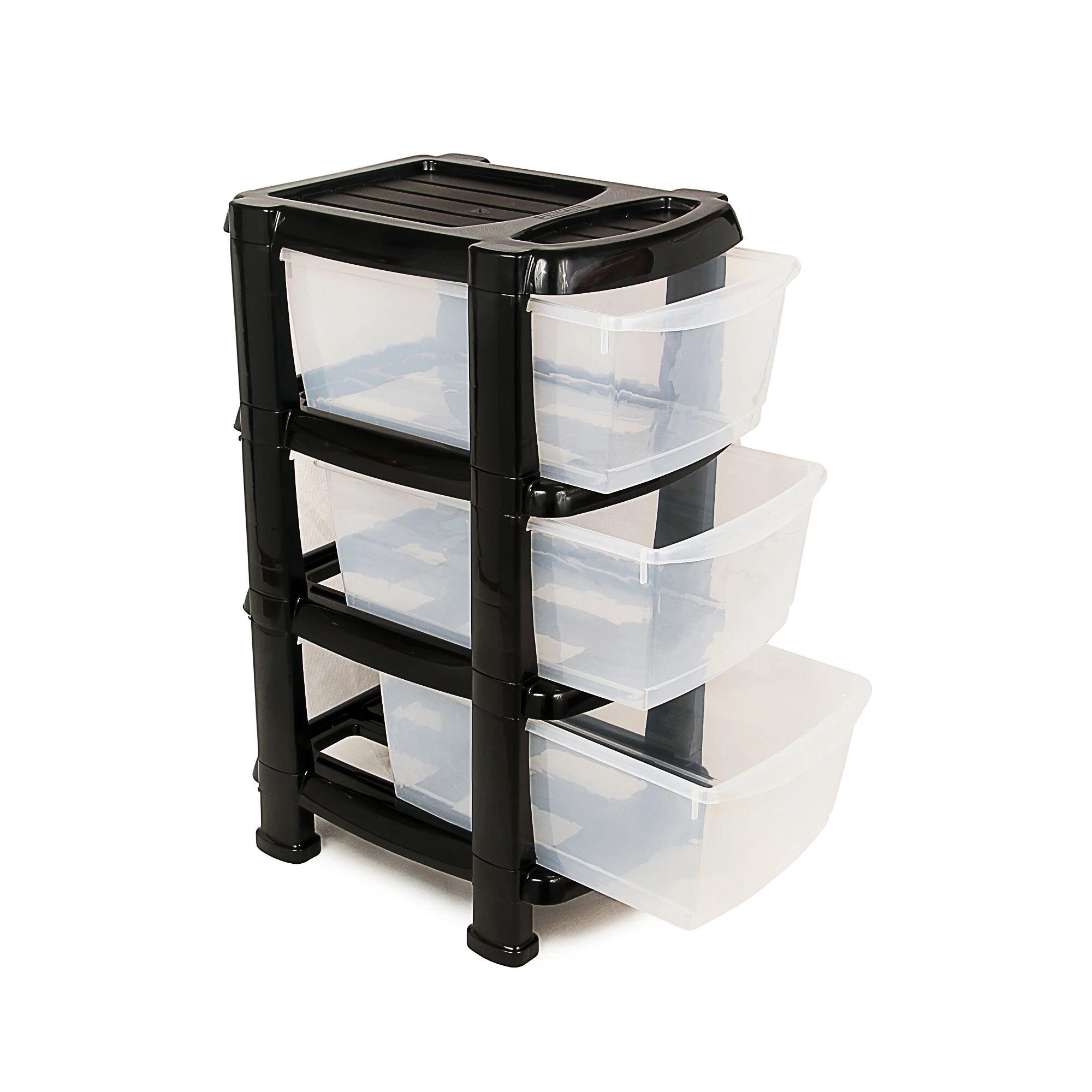 Plastový regál s tromi zásuvkami vám poslúži ako úložisko vašich vecí. Papiere, písacie potreby alebo hračky tak budú vždy po ruke a predovšetkým na jednom mieste. Vďaka priehľadnému prevedeniu zásuviek ľahko uvidíte, čo je ukryté vo vnútri, takže nebudete musieť zložito zisťovať, čo sa ukrýva pod zatvorenými vekami. Svoje využitie nájde v domácnostiach, ale napríklad aj v kanceláriách. Navyše je vyrobený z plastu odolného voči teplotám aj extrémom , takže sa nemusíte báť, že by sa len tak zničil. Výrobok je v dvoch farebných variantoch – s čiernym alebo bielym okrajom. |