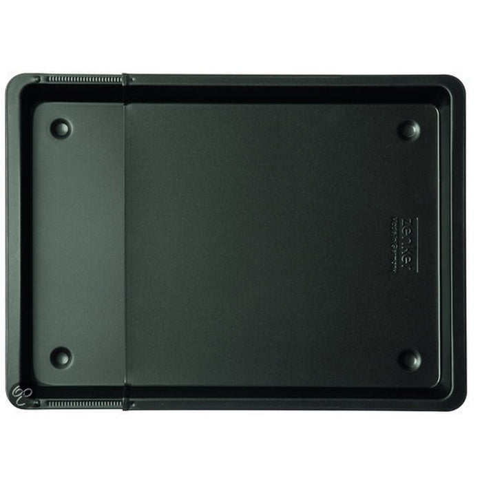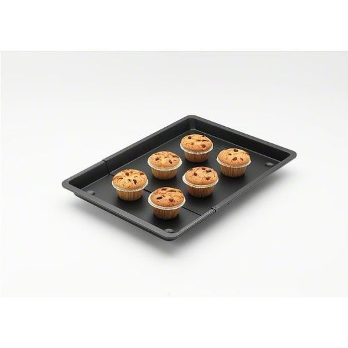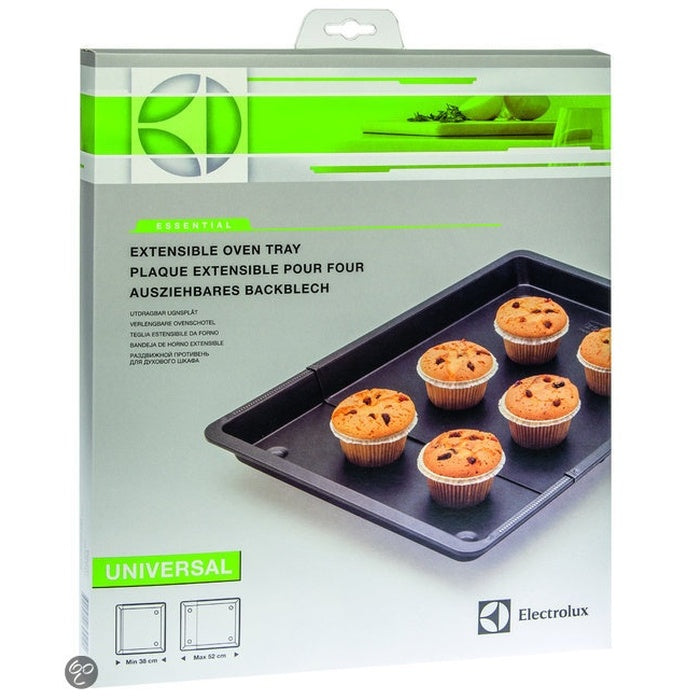 Univerzálny roztiahnuteľný plech do rúry Electrolux využijete v prípadoch, keď pečiete nepravidelne a nie vždy potrebujete veľký plech. Je potiahnutý teflónovou vrstvou. Šírku je možné nastaviť od 35 cm do 56 cm. Dĺžka je 32,5 cm.
