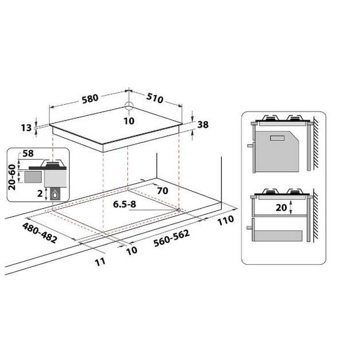 Zdroj napájania horáka/varnej zóny 2 | Plyn |