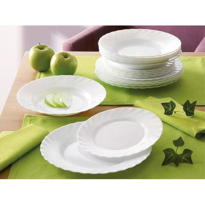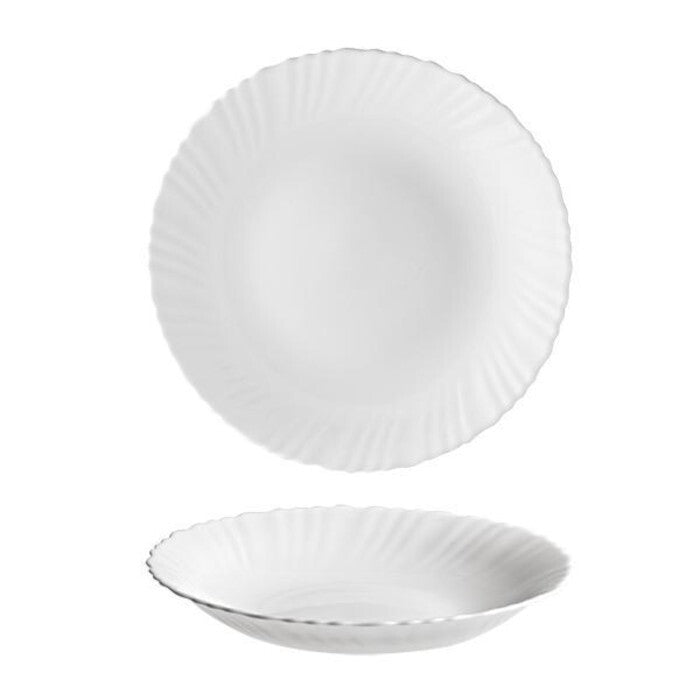 Polievkový tanier "Titan" Toro 160/0022, opálkové sklo, 22 cmŠtýlový polievkový tanier Titan od značky Toro si určite nájde svoje miesto vo vašej domácnosti. Tanier je vyrobený z opálového skla, ktoré je odolnejšie ako klasický porcelán, odoláva nárazom, neoštipuje sa, ale zároveň je veľmi ľahký. Čistá biela farba je klasickou farbou pre polievkové taniere a preto sa skvele hodí na každý jedálenský stôl. Jemné ryhovanie dodáva tanieru elegantný design. Vďaka svojmu prevedeniu sa tanier hodí aj do mikrovlnnej rúry. Jeho údržba je veľmi jednoduchá, je vhodný aj do umývačky riadu. K polievkovému tanieru si môžete dokúpiť aj ďalší riad v rovnakom štýle a jednoducho si tak dovybaviť vašu kuchyňu. Priemer 24 cm. |