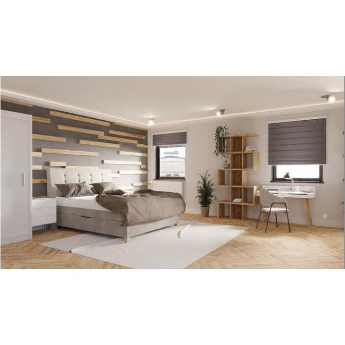 Nadštandardné pohodlie vďaka špecifickej skladbe vrstievZákladom boxspring postele Charles je pevný drevený rám. Na rám nadväzujú dva spodné bonellové matrace, jeden pre každé lôžko. Tieto matrace nahrádzajú lamelový rošt, čo je jeden z rozdielov boxspringov oproti bežnému typu postelí. Ďalšiu vrstvu tvoria dva kvalitné penové matrace položené vedľa seba. Celé lôžko je prekryté doplnkovým matracom s pamäťovou penou, ktorá sa ideálne prispôsobí tvaru ľudského tela. Takto koncipovaná posteľ poskytuje ideálne podmienky pre pohodlný a ničím nerušený spánok.