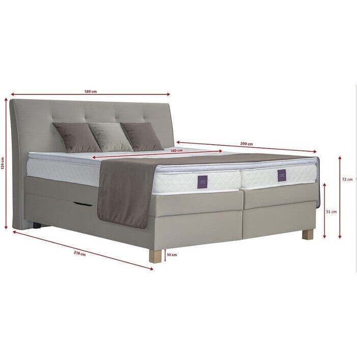 Boxspring Charles - garancia pohodlia a elegancieBoxspringová posteľ Charles sa stane dominantou každej spálne. Zaujme vás svojím moderným dizajnom, poskytovaným pohodlím a množstvom praktických funkcií. Plocha lôžka s rozmermi 180x200 cm poskytuje dostatok priestoru na odpočinok. Dominantou postele je čalúnené 124 cm vysoké čelo, ktoré je, rovnako ako korpus postele, čalúnené príjemnou látkou Salvador pripomínajúcou zamat. Celkový dizajn potom dopĺňajú lakované nožičky z masívneho dreva s výškou 10 cm, čo je dostatočný priestor pre väčšinu robotických vysávačov. Vďaka neutrálnej béžovej farbe sa posteľ Charles hodí do takmer všetkých bytových interiérov. Upozornenie: Vyobrazené vankúše a prikrývka nie sú súčasťou postele.