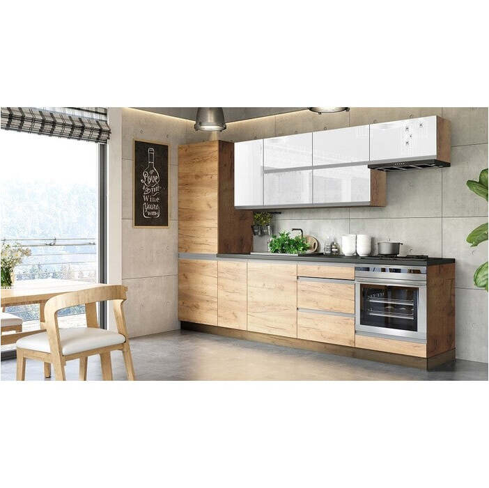 Spižní skříň do kuchyně Brick lightPotravinová skříň Brick light je součástí stejnojmenného kuchyňského programu. Pomůže vám vytvořit příjemné a elegantní prostředí ve vaší kuchyni. Navíc nabízí praktické úložné prostory a jedinečný styl! Vnitřní uspořádání skříně se ze základu dělí na větší horní a menší spodní část. Se skříní se dodávají také 3 police na vložení, můžete tak získat až 5 oddílů, které vám usnadní a zpřehlední úschovu potravin. |