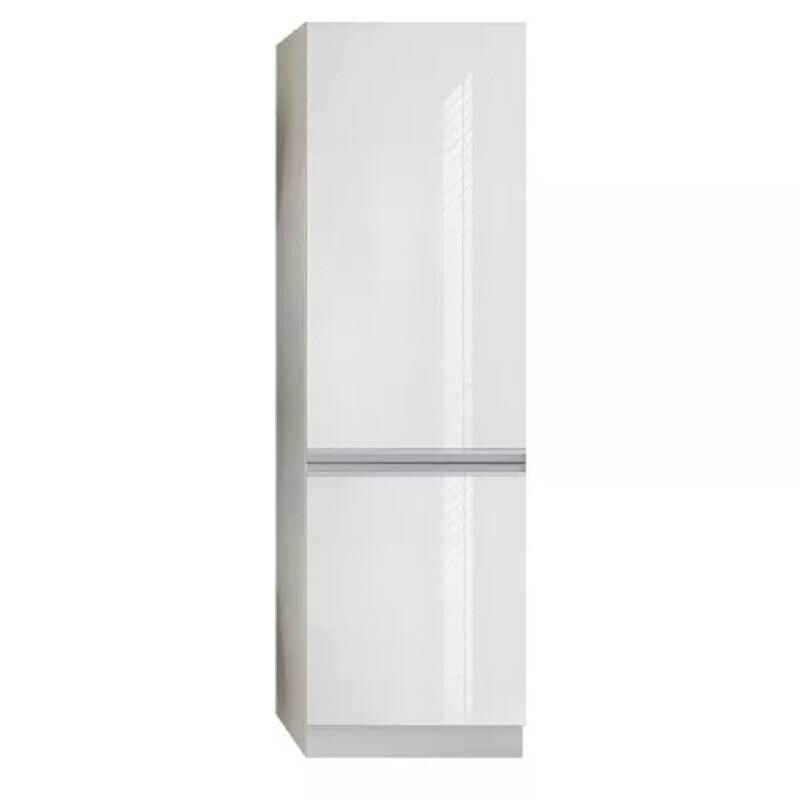 Potravinová skriňa do kuchyne MayaAk hľadáte spôsob, ako rozšíriť úložný priestor vo vašej kuchyni, tak je potravinová skriňa Maya to pravé riešenie práve pre vás. Jej rozmery sú zárukou štedrého množstva úložného priestoru, zatiaľ čo vďaka kombinácii bieleho dekoru a lesklej povrchovej úpravy zapadne do takmer akéhokoľvek interiéru. Celá skriňa na potraviny je vyrobená z kombinácie laminovaných drevotrieskových dosiek (LDTD) a drevovláknitých dosiek (MDF), ktoré sa vyznačujú odolnosťou proti oderu a krátkodobej vlhkosti. Tieto vlastnosti skrini zaisťujú nielen dlhú životnosť, ale tiež výrazne uľahčujú jej údržbu. Na jej očistenie tak nebudete potrebovať viac, než len navlhčenú handru alebo špongiu na riad. Potravinová skrinka Maya je súčasťou rovnomenného programu kuchynských liniek, s ktorými sa skvele dopĺňa. Vďaka modernému dizajnu a neutrálnej bielej farbe si ju však môžete zaobstarať aj k iným kuchyniam, pretože ju možno zladiť s prakticky akýmkoľvek dekorom.