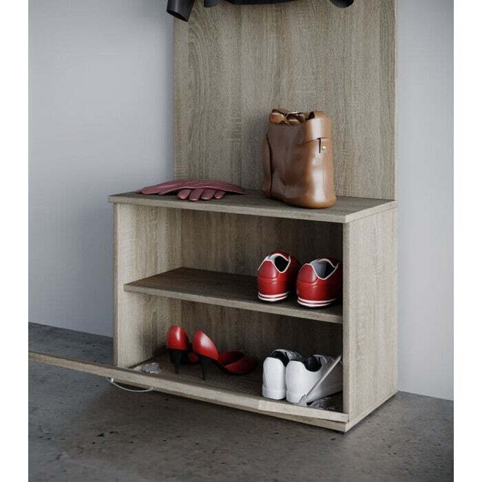 Predsieňová zostava LancePredsieňová stena Lanke je veľmi praktický pomocník a výborne zapadne do vašej predsiene či vstupného priestoru. Nábytok do predsiene sa skladá z botníka, troch vešiakov a hornej police. Na výrobu bola použitá kvalitná drevotrieska v dekore sonoma. Pôsobí veľmi moderne a vhodne doplní váš interiér. Predsieňový nábytok sa veľmi ľahko udržuje, na čistenie stačí použiť bežný saponát a látkovú handričku. Predsieňová zostava je vhodná aj do menších bytov. S predsieňou Lance máte všetko neustále upratané na svojom mieste.