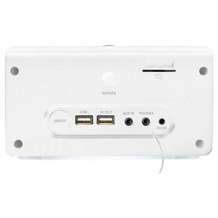 Perfektný rádiobudíkDigitálny rádiobudík s projektorom, USB nabíjačkou a svetelnými efektmi zaisťuje pohodlné a príjemné ranné prebudenie. Funkcia farebných svetelných efektov s nastaviteľnou intenzitou robí tento výrobok veľmi zaujímavým medzi ostatnými rádiobudíkmi.