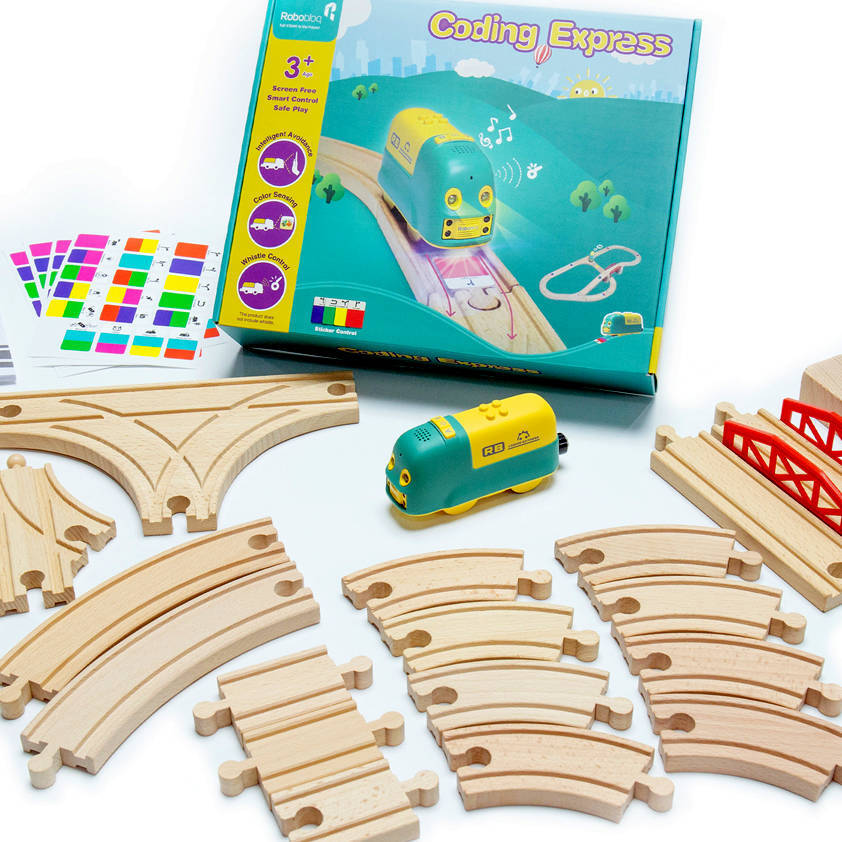 Inteligentný vlakRobobloq Kódovanie expresu vrátane koľajíPodporte rozvoj svojich najmenších pomocou inteligentného programovateľného vláčika. Vláčik Coding Express je určený pre deti od 3 rokov a jeho ovládanie je jednoduché a zábavné. Vláčik ovládate pomocou farebných nálepiek nalepených na koľajniciach alebo gestami rúk. Je vhodný na domácu hru aj na hranie v herných skupinách. Vláčik je vybavený dvoma funkčnými režimami - jazdou po koľajniciach (režim A) a voľnou jazdou (režim B). Môžete ho používať na drevených koľajniciach aj mimo nich. Podporuje rôzne funkcie: ovládanie smeru, prehrávanie hudby, inteligentné navádzanie a vyhýbanie sa prekážkam. Zabudované snímače reagujú na prekážky a na špeciálne nálepky, pomocou ktorých vlaku napríklad poviete, aby zastavil na vyznačenom mieste. Dráha je variabilná a kompatibilná s väčšinou drevených koľají na trhu a aj samotný vláčik si môžu vaše deti prispôsobiť pomocou stavebnice Lego. Keďže vláčik ani drevená dráha nemajú žiadny displej, rozvíjajú vaše dieťa prirodzeným hravým spôsobom a nezaťažujú jeho oči. Deti si pri hre môžu zlepšiť koncentráciu, motorické a praktické zručnosti, kreativitu a logické myslenie. |