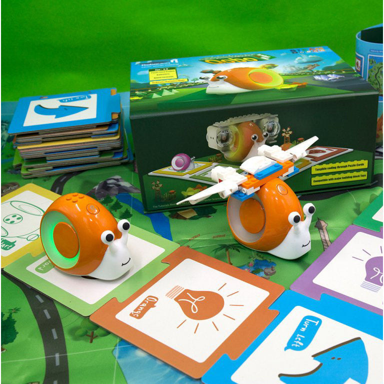 Robotická hračkaRobobloq Slimák QoboKúpte svojim deťom inteligentnú hračku, ktorá ich bude baviť aj rozvíjať. Inteligentný slimák je vhodný pre deti od 4 do 8 rokov. Jeho pohyb môžete ovládať pomocou kariet Robobloq s rôznymi znakmi a významami. Nechajte ho na nich jazdiť alebo ho s ich pomocou naprogramujte. Slimák Qobo vykonáva aj interaktívne funkcie, keď sa dotknete jeho tváre alebo s ním zatrasiete. Programovanie je jednoduché a deti sa pri ňom zabavia aj rozvíjajú. Slimák dokáže spievať, tancovať, pohybovať sa a svietiť rôznymi svetlami! Deti sa budú učiť počas hry. Jedna karta, jeden svet, nekonečné kombinácie, neobmedzená zábava. |
