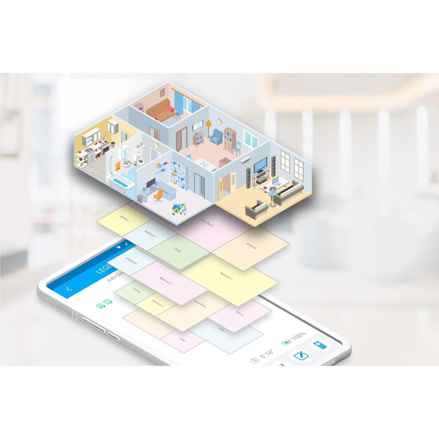 Uloženie 5 máp upratovaniaRobotický mop LEGEE 7 si môže zapamätať až 5 máp upratovania a uložiť si ich do pamäte. Uložené mapy použijete, ak robot LEGEE 7 upratuje iné poschodie v dome. |