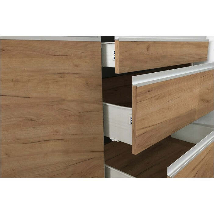 Funkcia plynulého otvárania a tlmeného zatváraniaDvierka vrchných skriniek sú opatrené plynovými piestami, ktoré zaistia bezpečné a plynulé otváranie, čo je veľmi užitočné z pohľadu pohodlnosti manipulácie a tiež z pohľadu praktického, kedy dvierka po otvorení zotrvávajú vo vodorovnej polohe. Naproti tomu dolné skrinky disponujú systémom tlmeného zatvárania, ktorý zamedzí nechcenému búchaniu dvierok a významne tak znižuje opotrebovanosť nábytku.