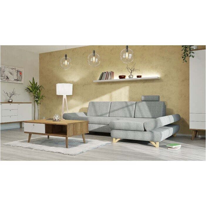 Moderná sedačka Avesta je tým pravým typom čalúneného nábytku do vašej obývacej izbySedacia súprava Avesta vás na prvý pohľad zaujme svojim nadčasovým dizajnom. Sedačka je nielen vzhľadovo atraktívna, ale poteší vás taktiež svojimi praktickými funkciami a ergonómiou zaisťujúcimi pohodlné sedenie a vstávanie. Medzi ne patrí napr. variabilný podhlavník, 2 polohovacie podrúčky, rozklad na lôžko alebo úložný priestor. Ďalšie z výberu pozitív sedacej súpravy Avesta je pohodlie, ktoré ponúka. Kvalitná poťahová látka spoločne s výplňou vytvárajú ideálne podmienky pre kvalitný odpočinok. Moderný vzhľad sedačky podčiarkujú trendovo vyhotovené drevené nožičky v prírodnej farbe. Vďaka nožičkám si s uprataním pod sedačkou nebudete musieť lámať hlavu, pod sedačku sa zmestí väčšina robotických vysávačov. Pokiaľ hľadáte modernú, pohodlnú a kvalitnú sedaciu súpravu, sedačka Avesta je pre vás ako stvorená.