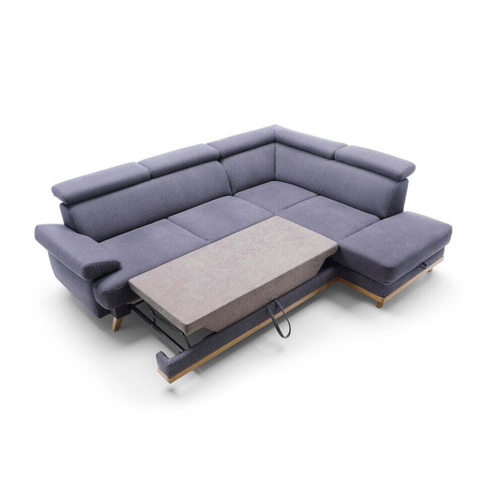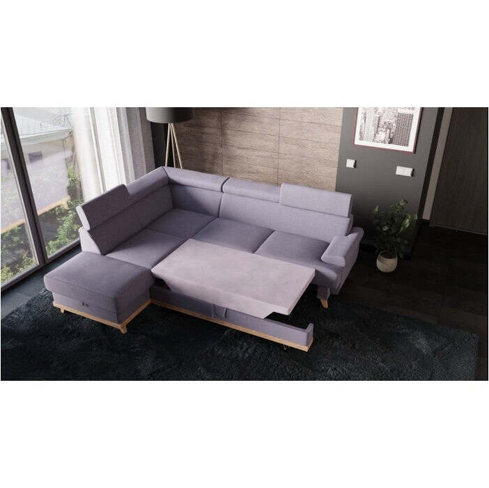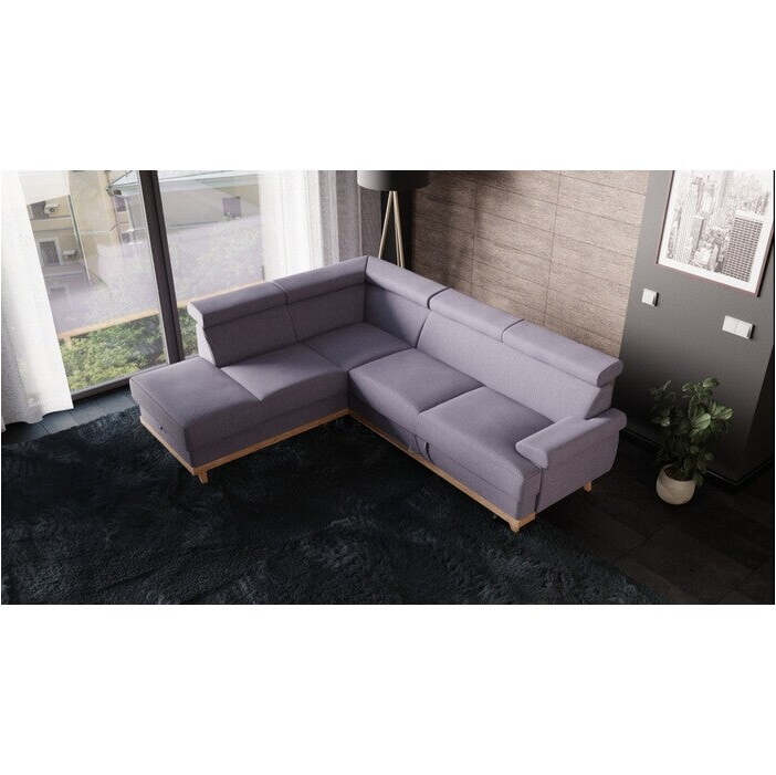 Rohová sedacia súprava Gradex je poňatá v modernom štýle. Je vybavená funkciou na príležitostné prespanie vďaka možnému rozkladu na lôžko s rozmermi 122x188 cm. Disponuje tiež bohatým úložným priestorom, kam môžete uschovať vaše veci, ktoré potrebujete mať nablízku (napr. lôžkoviny). Sedačka má tiež pohyblivé opierky hlavy, ktoré je možné nastaviť v ľubovoľnom uhle. Poťah súpravy je z látky Pegasus 97, tento materiál veľmi odolný s dlhou životnosťou, ale je tiež veľmi príjemný na dotyk. Sedadlo vo výške 47 cm a výplň z HR peny vám zaistia luxusné pohodlie pri sedení aj vstávaní. Elegantnosť sedačke potom pridajú vysoké drevené nožičky a drevená ozdobná lišta. Vďaka vysokým nožičkám si s upratovaním pod sedačkou nebudete musieť lámať hlavu, pod sedačku sa zmestí väčšina robotických vysávačov.