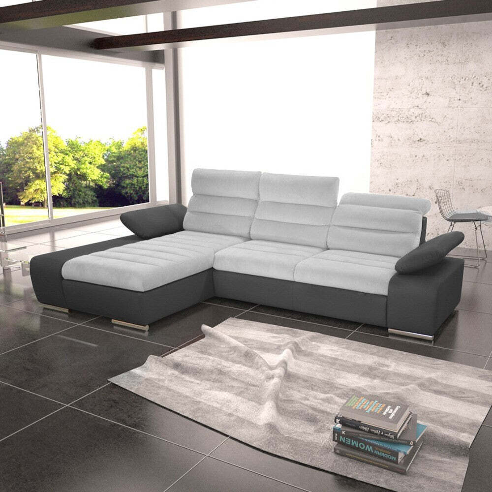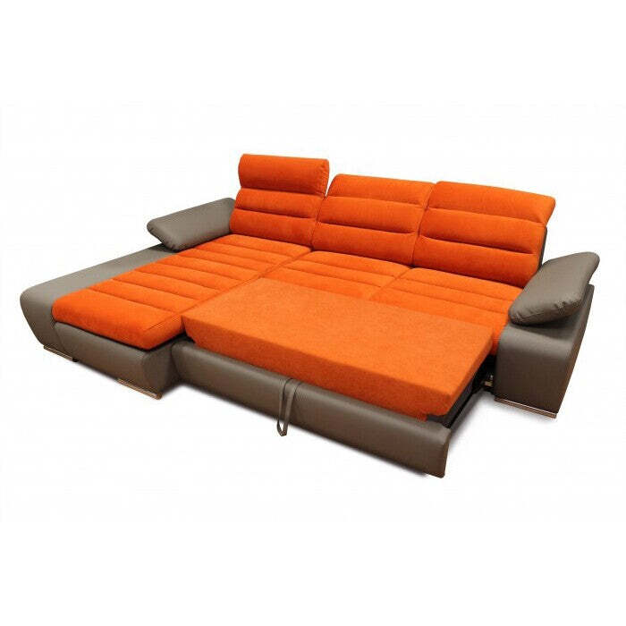Moderná rohová sedacia súprava KorfuV dnešnej dobe sa nachádza neustále viac a viac priaznivcov moderného a nevšedného dizajnu, ktorý úplne ovládne daný interiér. Takým prvkom je aj rohová sedacia súprava Korfu. Jednoducho sa stane dominantou miestnosti, vycibrí celkový vzhľad a navyše bude maximálne komfortný. K tomu napomáhajú aj polohovateľné podhlavníky a polohovateľné podrúčky, ktoré vám doprajú kvalitné sedenie. Pod otomanom sa nachádza úložný priestor, kam si môžete uložiť vankúše či deky. Významnou vlastnosťou sedačky je jej rozloženie na lôžko s rozmermi 210x124 cm. Prešívané operadlá a sedáky sú vyplnené mäkkou PUR penou. Pevná konštrukcia spoločne so striebornými nôžkami zaručuje stabilitu. Ideálna výška 40 cm zaručuje ľahké sadanie a vstávanie bez väčšej námahy. Sedacia súprava ponúka dostatok miesta pre vás aj celú vašu rodinu. |