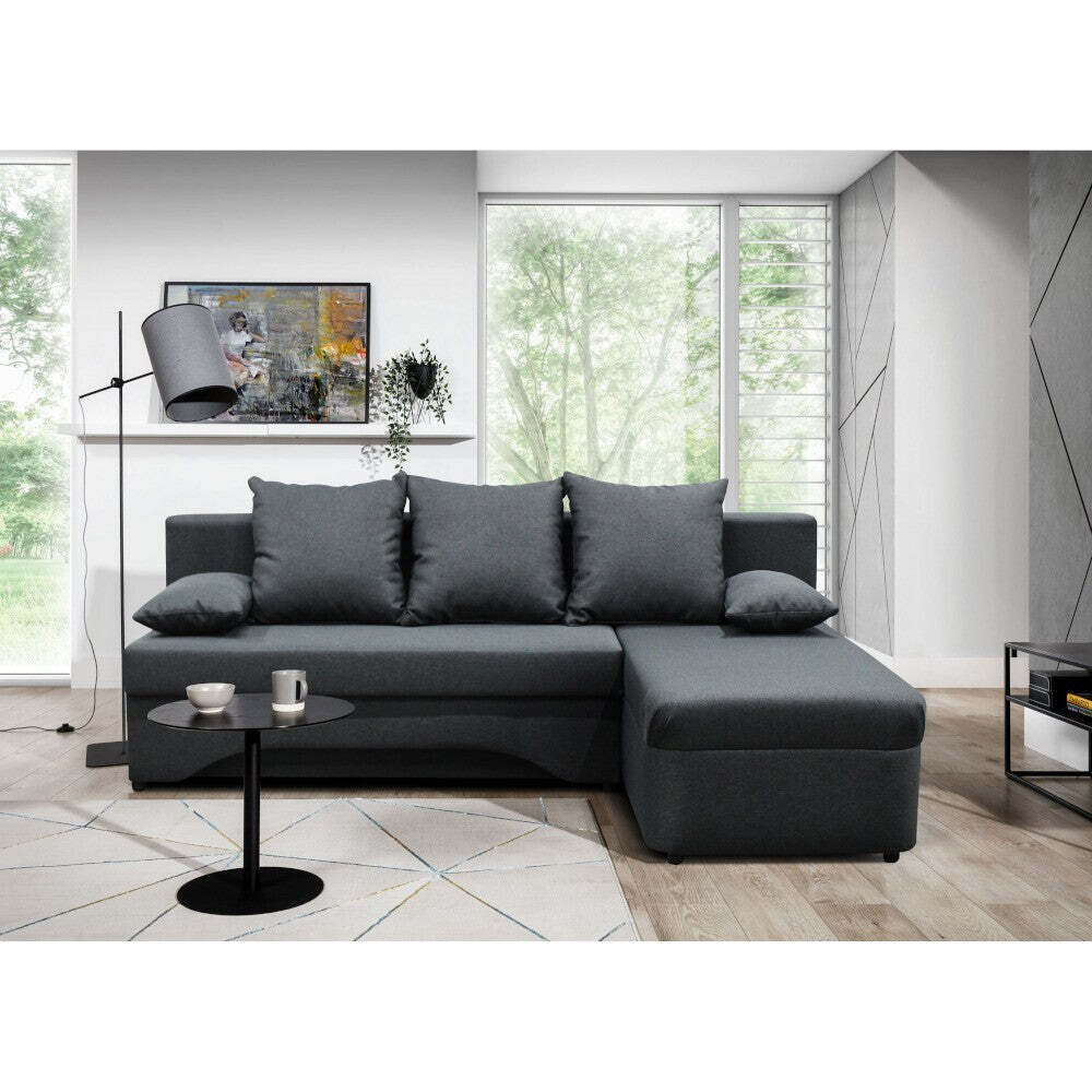 Moderná rohová sedacia súprava Laugar vám poskytne priestor na pohodlný odpočinok. Vďaka svojmu atraktívnemu dizajnu a vyhotoveniu v čiernej farbe ľahko zapadne do akéhokoľvek interiéru. Sedačka vám ponúkne nielen množstvo praktických funkcií, ale jej ergonómia vám zaistí veľmi luxusné pohodlie , či už pri sedení tak ležaní. Medzi jej funkcie patrí rozklad na veľmi priestranné lôžko s rozmermi 192x135 cm, kde sa vy alebo vaša návšteva pohodlne vyspí a ďalej vám ponúkne bohatý úložný priestor , do ktorého si budete môcť uschovať napr. vaše lôžkoviny a mať tak istotu že sa vám na ne nebude prášiť. Sedačku pre vyššie pohodlie dopĺňa celkom päť vankúšov. Ďalší z pozitív je, že vďaka univerzálnemu rohu si budete môcť sedačku zmontovať do strany, akú potrebujete.