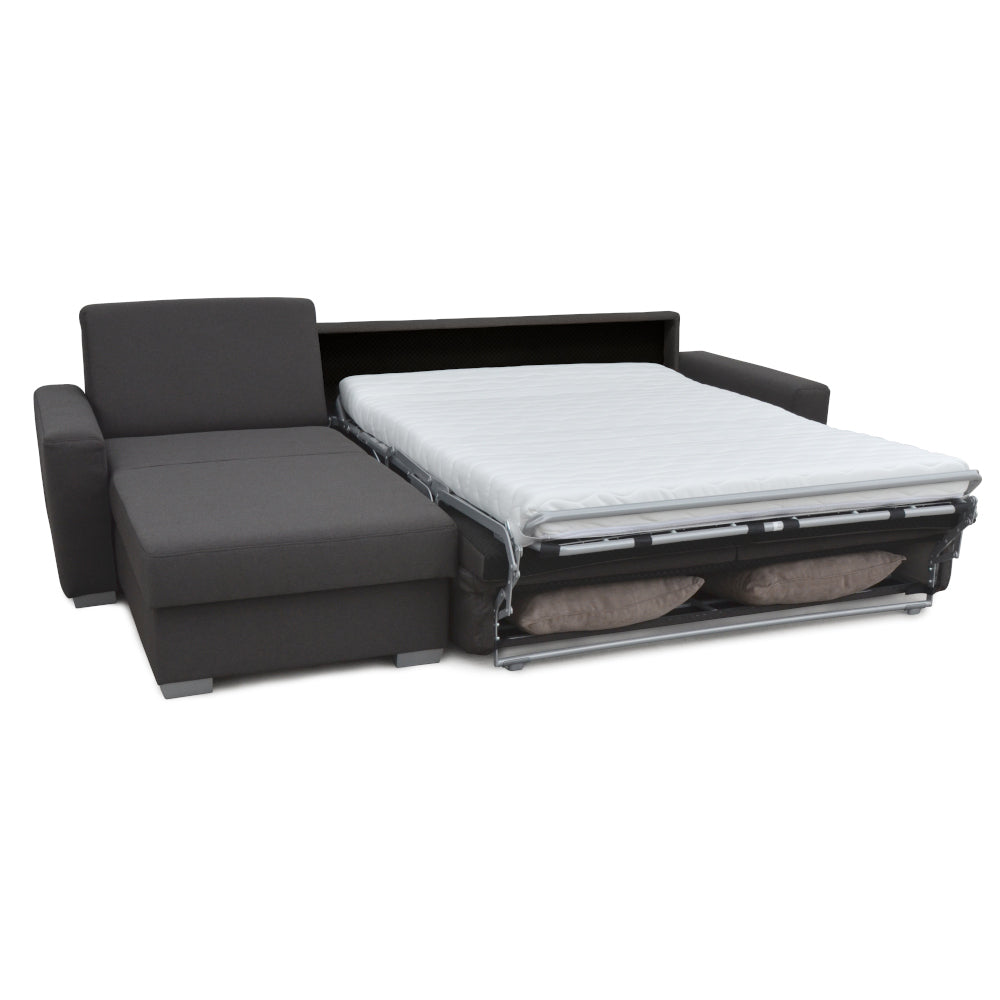 Počas niekoľkých sekúnd máte zo sedačky priestranné lôžkoSedaciu súpravu je možné rozložiť na veľmi pohodlné lôžko s rozmermi 190x140 cm, ktoré je vďaka 12 cm vysokému integrovanému matracu s jadrom z PUR peny vhodné používať na každodenné spanie.