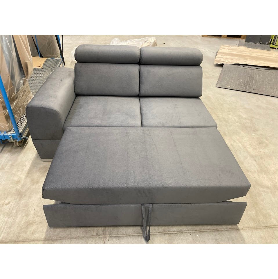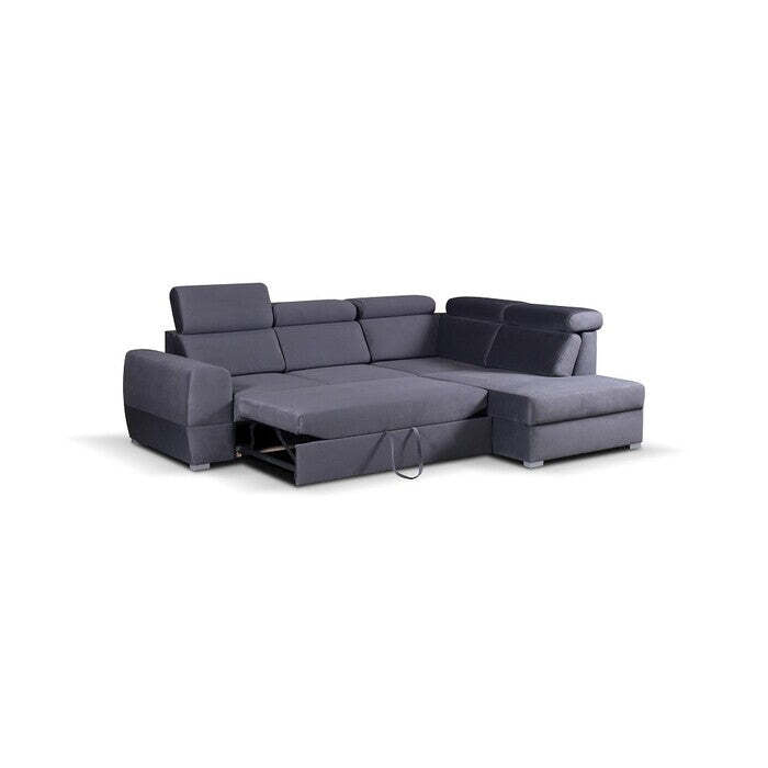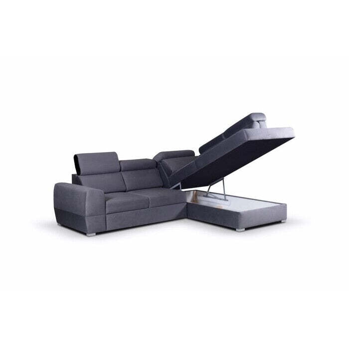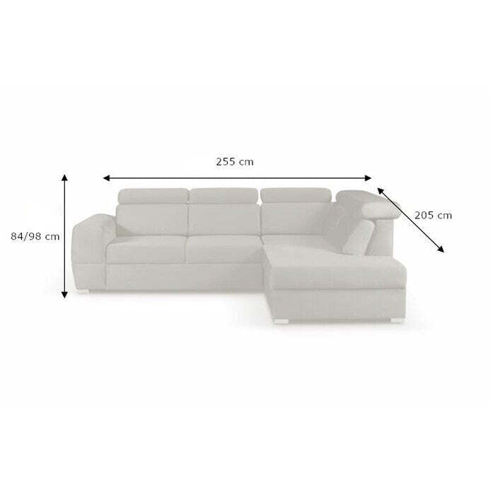 Matrix Nová rohová rozkladacia pohovkaElegantná rohová rozkladacia pohovka Matrix New vás nadchne nielen svojím moderným poňatím, ale predovšetkým komfortom, ktorý poskytuje. Pohovka ponúka aj niekoľko praktických funkcií, ako je napríklad polohovateľná opierka hlavy. Ďalšou vlastnosťou je veľkorysý úložný priestor, do ktorého môžete uložiť všetko, čo chcete mať po ruke, napríklad prikrývku alebo vankúše. Manipulácia s úložným priestorom je veľmi jednoduchá. Stačí posunúť otoman na konci sedačky, ktorý sa dá uchopiť a zdvihnúť. A treťou funkciou je možnosť rozložiť ho na lôžko, čím získate plochu 207 × 120 cm, ktorú môžete využiť na vlastný odpočinok alebo na uloženie návštev. Navyše vďaka kombinácii sivého dekoru s kovovo striebornými nožičkami pohovka dokonale zapadne do väčšiny interiérov.