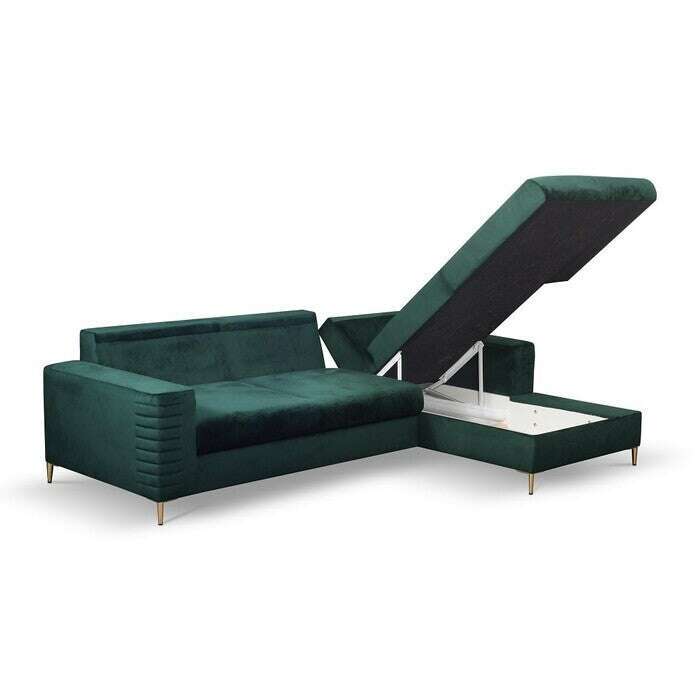Rohová sedacia súprava Rell zaujme na prvý pohľad svojím vycibreným dizajnom, ktorý vábi k pohodlnému posedeniu. Je nielen vzhľadovo veľmi atraktívna, ale poteší vás aj svojimi praktickými funkciami a ergonómiou zaisťujúcou pohodlné sedenie i vstávanie. Medzi ne patrí napríklad polohovateľný podhlavník, rozklad na lôžko a úložný priestor. Ďalším zo zoznamu pozitív sedacej súpravy Rell je pohodlie, ktoré ponúka. Kvalitná poťahová látka spoločne s výplňou vytvárajú ideálne podmienky na kvalitný odpočinok. Moderný vzhľad sedačky podčiarkujú vkusné kovové nožičky v zlatej farbe. Vďaka nožičkám si s upratovaním pod sedačkou nebudete musieť lámať hlavu, pod sedačku sa zmestí väčšina robotických vysávačov. Rohovú sedačku Rell si obľúbi každý milovník luxusu.