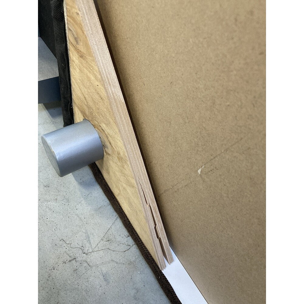 Důvody zařazení do bazarového zboží - deformace opěrky na levé části, levý díl má naprasklé dřevo u levé zadní nohy. Fotografie poškození naleznete v galerii.