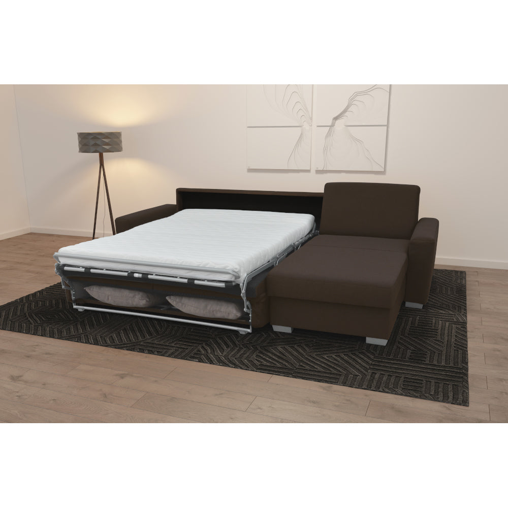 Počas niekoľkých sekúnd máte zo sedačky priestranné lôžkoSedaciu súpravu je možné rozložiť na veľmi pohodlné lôžko s rozmermi 190x140 cm, ktoré je vďaka 12 cm vysokému integrovanému matracu s jadrom z PUR peny vhodné používať na každodenné spanie.