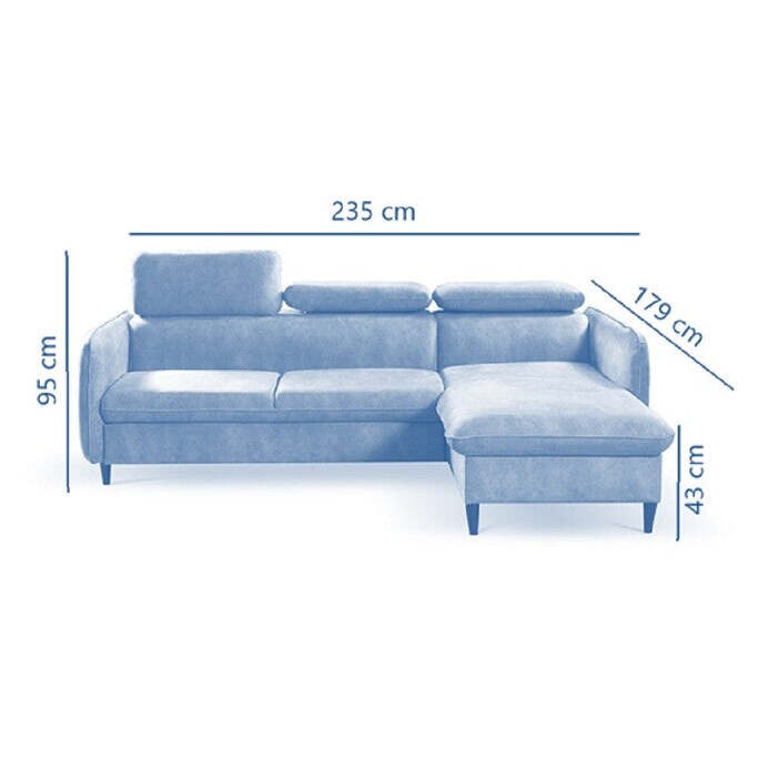 Moderná sedacia súprava MatisKúpte si do vašej obývačky modernú sedaciu súpravu Matis a užite si ten pravý odpočinok. S rozmermi 235x95x179 cm ponúkne dostatok priestoru a mnoho ďalších praktických funkcií. Sedačka disponuje úložným priestorom umiestneným pod otomanom. Ďalej ponúka možnosť rozkladu na pohodlné lôžko 211x124 cm, ktoré príde vhod pre príležitostné prespanie. Okrem kvalitných materiálov použitých pri výrobe sa o vaše pohodlie postarajú polohovateľné podhlavníky a výška sedadla 43 cm, ktorá vám zaistí príjemné sedenie i vstávanie.Strieborná poťahová látka v dekore sally 8 spoločne s výplňou vytvára ideálne podmienky pre chvíle kvalitného odpočinku. Celkový vzhľad sedacej súpravy dopĺňajú vyššie nožičky, ktoré sú praktické pri upratovaní, kedy umožňujú využitie robotických vysávačov. |