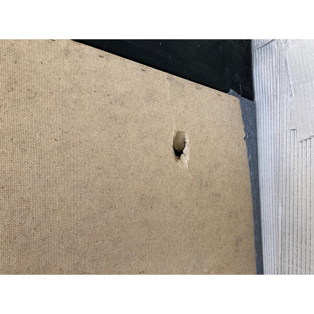 Nekompletné - iba pravá časť, chýbajú nohy, znečistené na viacerých miestach, chýba kovová krytka na podhlavník, uvoľnený plastový kryt v úložnom priestore, pokrčená látka.