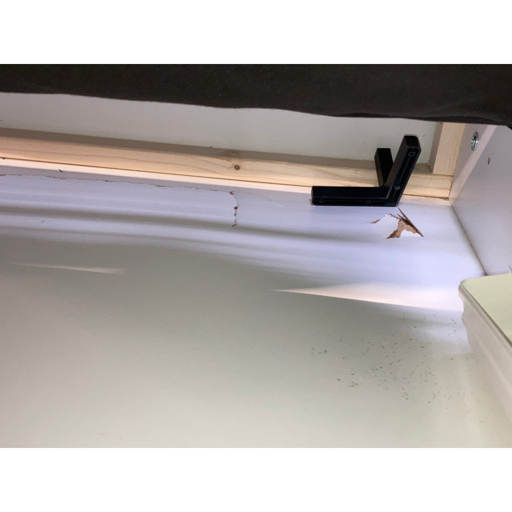 Dôvody zaradenia do bazárového tovaru - nekompletné - iba pravá časť, chýbajú nohy, znečistené na viacerých miestach, chýba kovová krytka na podhlavník, uvoľnený plastový kryt v úložnom priestore, pokrčená látka. Fotografie poškodenia nájdete v galérii.