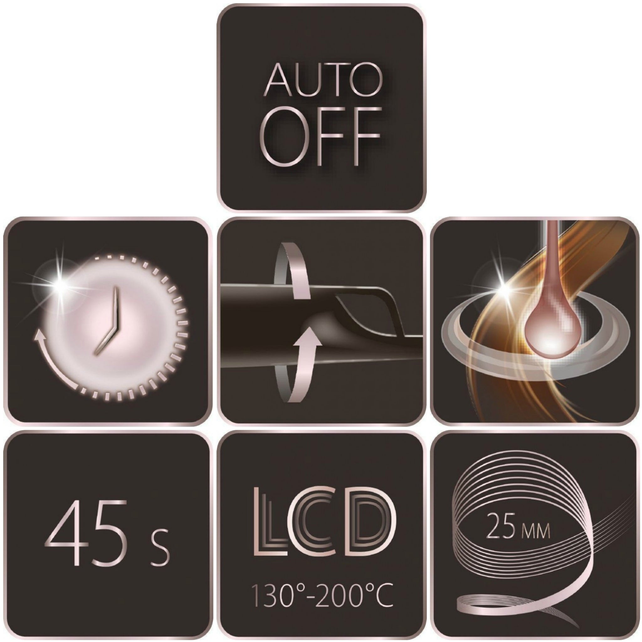 LCD displejNa rukoväti kulmy je integrovaný LCD displej, na ktorom môžete nastaviť až 8 teplôt(od 130 ° -200 ° C). Umožňuje tak individuálne nastavenie podľa typu vašich vlasov (jemné, normálne alebo silné) a požadovaných výsledkov. Kulma ponúka veľmi rýchle zahriatie, už za 45 s je pripravená na natáčanie vlasov. Šnúra je o 360 ° otočná, je tak zaistená maximálna flexibilita. |