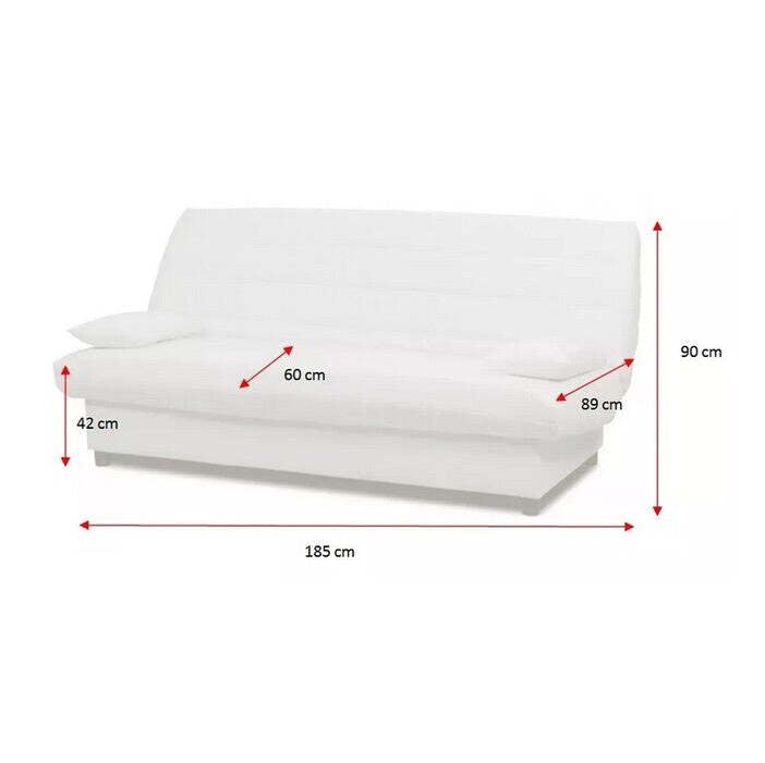 Moderná a praktická pohovka Clic ClacRozkladacia pohovka Clic Clac je moderný a veľmi vkusný kus nábytku, ktorý doplní vašu obývaciu izbu o dizajnový prvok. Pohovka sa vďaka svojim menším rozmerom bude hodiť do malých obývacích izieb. Chybu však neurobíte, ani pokiaľ jej umiestnite do väčšieho priestoru. Môže slúžiť ako sedačka, ale po rozložení funguje aj ako lôžko. Na pohovke oceníte jej funkciu rozkladu, vďaka ktorej tak získate príležitostné miesto na prespanie s veľkosťou 185x125 cm. Ďalšou veľkou výhodou je, že vo svojej konštrukcii ukrýva úložný priestor, do ktorého uschováte všetko, čo chcete mať hneď po ruke. Pohovka je potiahnutá príjemnou látkou, ktorá dotvára celkový vzhľad pohovky. Látka je moderne prešívaná, vďaka tomu sa poťah nepoškodí ani po častom používaní. Poťah pohovky je navyše možné kedykoľvek zložiť a vyprať v práčke. Údržba pohovky Clic Clac je tak veľmi jednoduchá a nenáročná. Dekor sa bude skvele hodiť k svetlým, ale aj výrazným sýtym farbám.