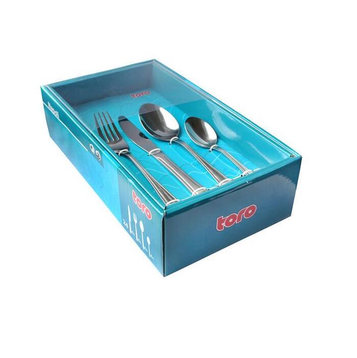 Praktická sada príborov pre vaše každodenné stolovanie. K dispozícii budete mať po šiestich kusoch jedálenských nožov, vidličiek, polievkových lžičiek a malých kávových lžičiek. Sú vyrobené z nehrdzavejúcej ocele 18/0, teda s vami vydržia skutočne dlho. Nie je problém umývať v umývačke. |