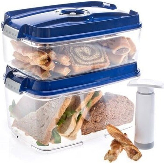 Súprava vákuových dóz Status 178654Súprava vákuových dóz na potraviny Status 178654 je určená na skladovanie potravín. Je veľmi jednoduchá na použitie. Vďaka nej je proces oxidácie pomalší a potraviny si zachovávajú svoju kvalitu niekoľko dní alebo aj dlhšie. Vákuovaním sa odstráni vzduch a teda aj kyslík, tým sa predĺži trvanlivosť. Kyslík, vlhkosť a teplota sú hlavné príčiny zhoršenia kvality potravín. Rozmery: 3L – 30,5 x 19 x 12 cm 4,5L – 30,5 x 19 x 15,5 cm |