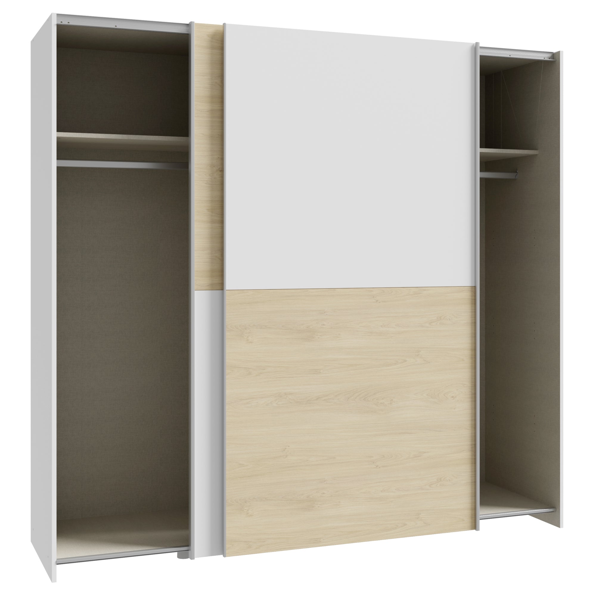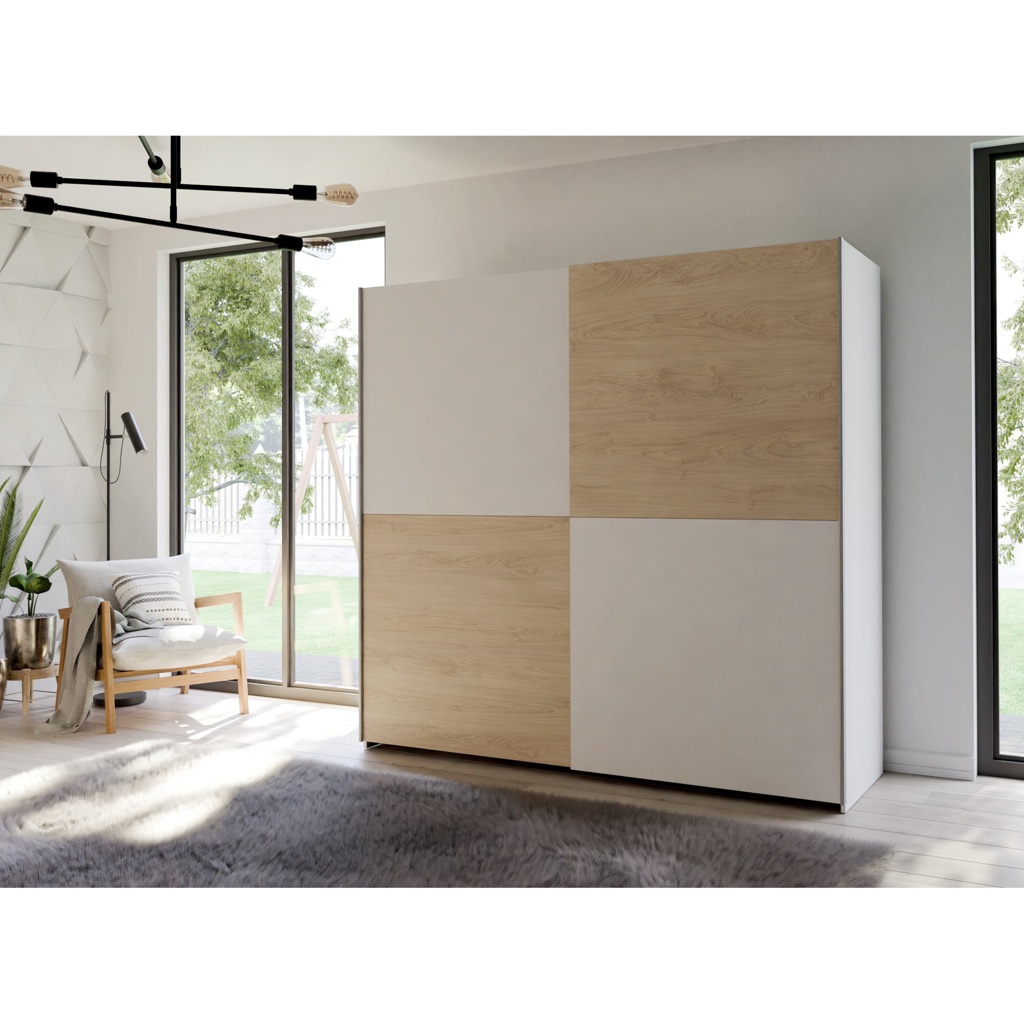 Šatníková skriňa Amy s posuvnými dveramiŠatníková skriňa Amy je dokonalým doplnkom vašej spálne vďaka kombinácii praktickosti, priestrannosti a elegantného dizajnu. Kombinácia prírodného dubového dreva a bielej povrchovej úpravy sa ľahko zladí s ostatným nábytkom v interiéri, čo vám dáva neobmedzené možnosti pri zariaďovaní spálne. Vďaka posuvným dverám šatníková skriňa nielen šetrí miesto, ale umožňuje aj jednoduchú manipuláciu s nimi, čo je praktické najmä v stiesnených priestoroch. Vnútorné usporiadanie je rozdelené medzi dve šatníkové tyče a dve police, čo vám poskytne dostatok priestoru na uloženie oblečenia, obuvi a iných doplnkov. Šatníková skriňa je vyrobená z kvalitných a pevných LDTD dosiek, ktoré zaručujú jej odolnosť a spoľahlivosť. Vďaka svojim rozmerom sa šatníková skriňa ľahko zmestí do väčšiny spální a poskytne vám dostatok priestoru na usporiadanie šatníka. |