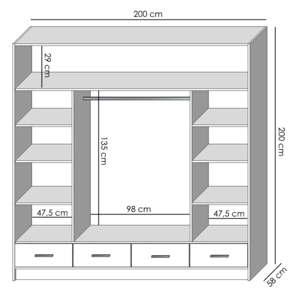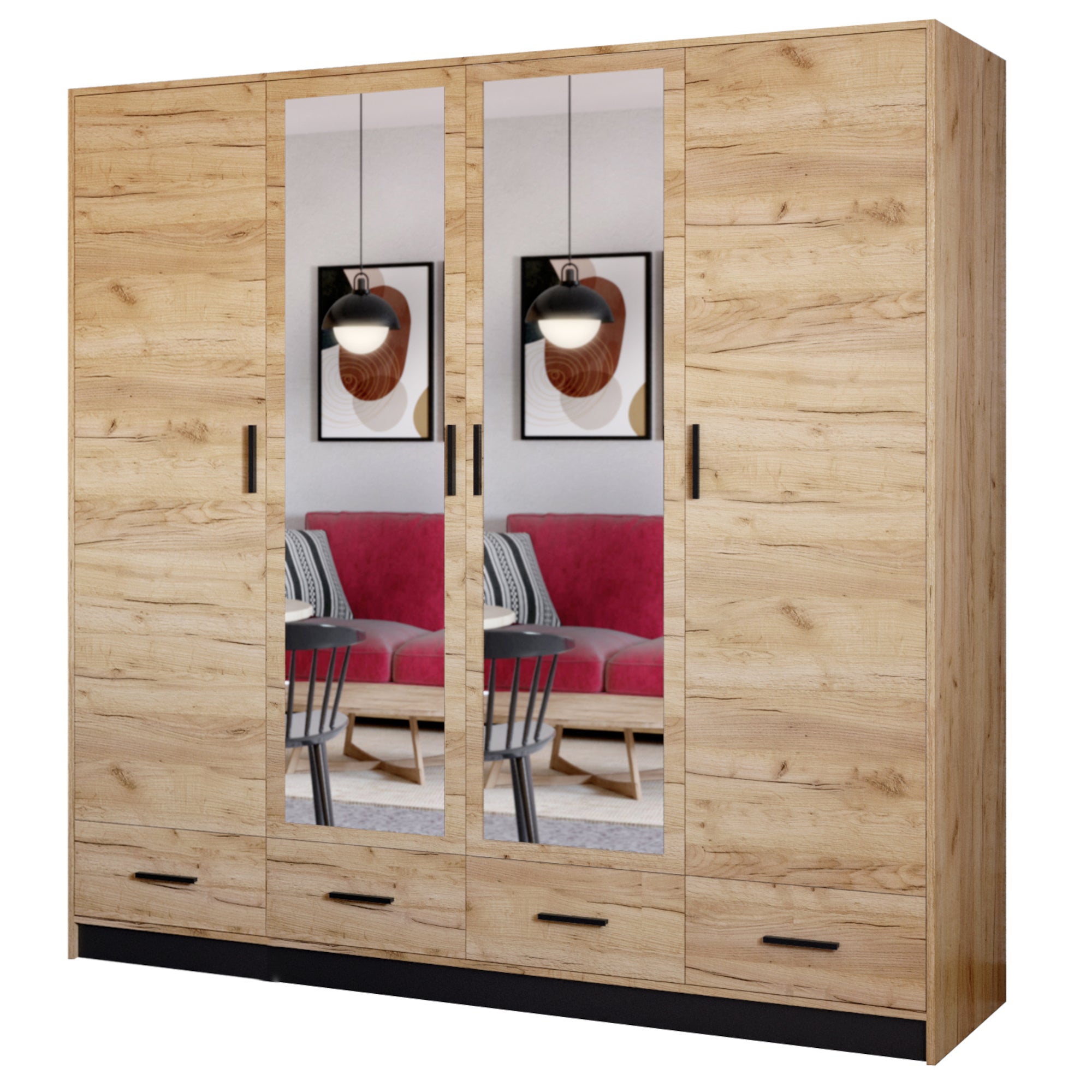 Moderný šatník SafooElegantná šatníková skriňa Safoo je mimoriadne praktická a vďaka svojmu prírodnému dekoru dokonale zapadne do vašej domácnosti. Úložný priestor je prakticky rozdelený a pojme veľké množstvo vecí. Svoje oblečenie môžete prehľadne rozdeliť medzi police, šatníkovú tyč na vešiakoch alebo štyri praktické zásuvky. Zrkadlo, ktoré je súčasťou dverí, sa stane vaším každodenným pomocníkom pri kontrole vášho vzhľadu. Okrem toho zrkadlo opticky zväčší a presvetlí miestnosť.Šatníková skriňa je vyrobená z laminovanej drevotrieskovej dosky LDTD. Tento materiál sa hojne využíva na výrobu nábytku, a to najmä pre svoje dobré vlastnosti, ako sú pevnosť, stabilita a odolnosť voči krátkodobej vlhkosti a oderu. Jeho veľkou výhodou je jednoduchá údržba. |