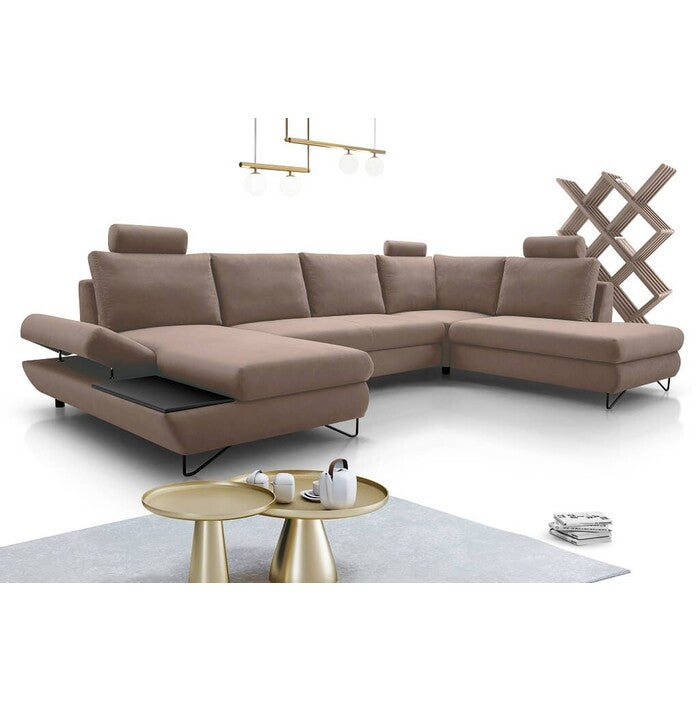 Dominantná nadčasová sedačka Stockholm je tým pravým typom čalúneného nábytku do vašej obývacej izbySedacia súprava Stockholm zaujme na prvý pohľad svojím nevšedným dizajnom, ktorý z nej robí luxusný sedací nábytok. Je nielen vzhľadovo veľmi atraktívna, ale poteší vás aj svojimi praktickými funkciami a ergonómiou zaisťujúcou pohodlné sedenie aj vstávanie. Medzi ne patria napr. tri variabilné podhlavníky, rozklad na lôžko, dva samostatné úložné priestory, ale aj polohovateľná opierka pod ruku a praktická odkladacia doska. Ďalšou z pozitív sedacej súpravy Stockholm je pohodlie, ktoré ponúka. Kvalitná poťahová látka spoločne s výplňou vytvára ideálne podmienky pre kvalitný odpočinok. Moderný vzhľad sedačky podčiarkujú trendovo vykonané oceľové nôžky v čiernej farbe. Vďaka nôžkam si s upratovaním pod sedačkou nebudete musieť lámať hlavu, pod sedačku sa zmestí väčšina robotických vysávačov. Ak ste mnohopočetná rodina a hľadáte modernú, pohodlnú a kvalitnú sedaciu súpravu, sedačka Stockholm je pre vás ako stvorená.