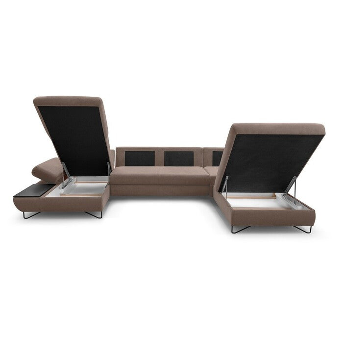 Vnútri sedačky sa skrýva veľa úložného priestoruSedačka je ďalej vybavená dvoma úložnými priestormi na každej strane. Sem môžete uložiť všetko, čo chcete mať ihneď po ruke, ako napr. deku či vankúše. Na uložené veci sa jednak nepráši a súčasne sú chránené plastovými krytmi mechanizmu otvárania. Manipulácia s úložným priestorom je veľmi jednoduchá. Otoman sedačky jednoduchým pohybom na konci chytíte a zdvihnete.