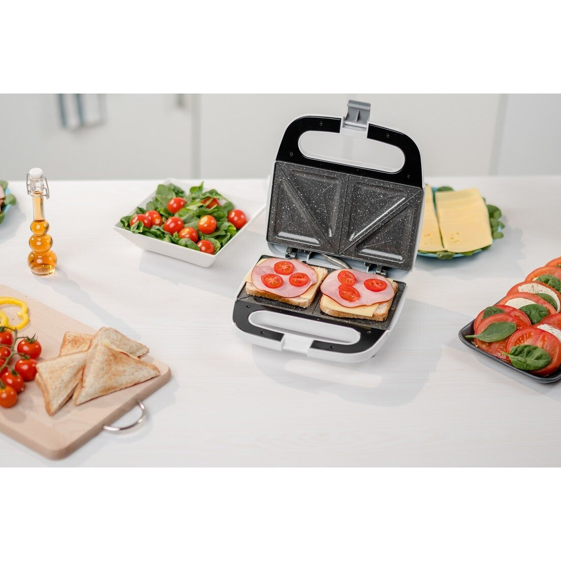 Rýchla desiataŠtyri trojuholníkové platničky vám umožnia pripraviť až 4 sendviče naraz. Pripravíte tak veľmi jednoduchú, rýchlu a teplú desiatu za pár minút. Sendviče sú ideálne na desiatu, aj aj na večeru. |