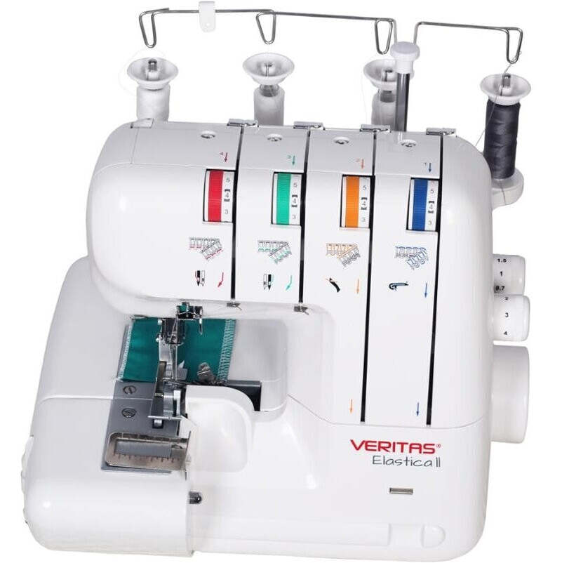 Jednoduchá obsluhaOverlock Veritas Elastica je kvalitný 2, 3 a 4-nitný overlock pre domácnosť so silným orezovým systémom a automatickým rolovaným lemom pre domácnosť. Overlock má diferenciálne podávanie, ktoré možno pohodlne regulovať a zaručuje rovnomerné podávanie aj veľmi pružných materiálov. Rýchlosť šitia dosahuje až 1 300 stehov za minútu. Farebné značenie navliekacích dráh a možnosť vypnutia orezu. |
