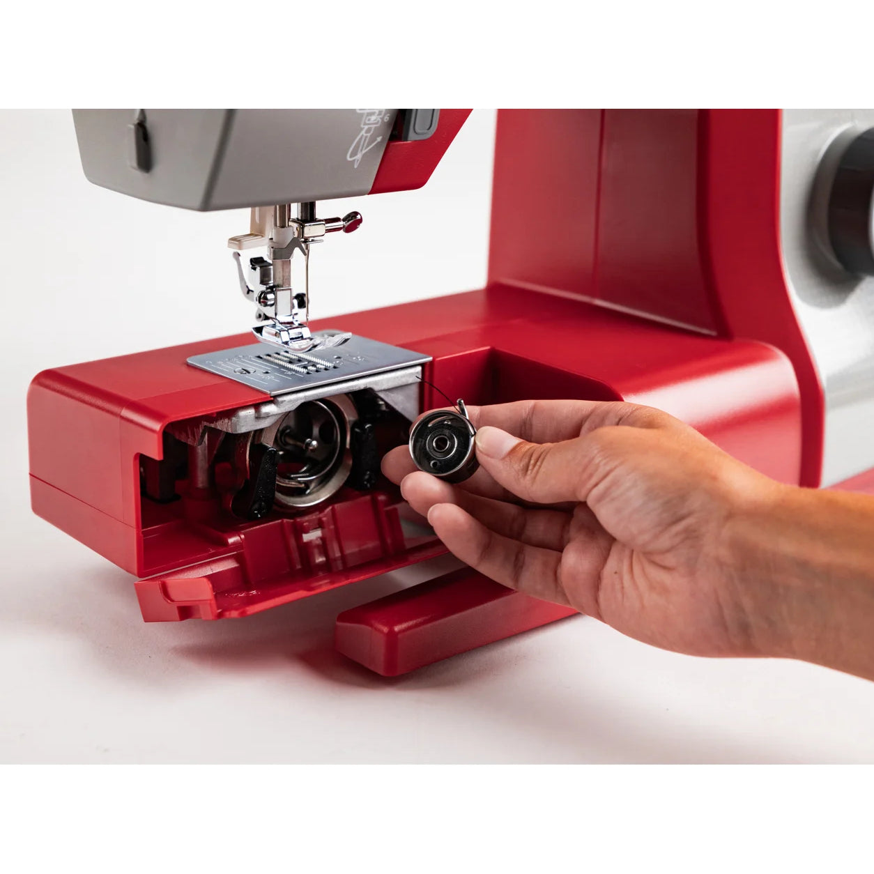 Ďalšie skvelé funkcie a príslušenstvoStroj má tiež kolk pre druhú hornú niť a podporuje tak šitie dvojihlou. Šitie s ním bude pohodlné aj vďaka plstenej podložke na držiak nite. Použiť môžete malé aj veľké cievky vďaka zarážke. Dostanete aj 3 cievky pre rôzne farby nití, vodič látky na jednoduchý priechod látkou a podperu na šitie džínsoviny. Jednoduchú údržbu zaistí skrutkovač v tvare L, páraček a štetec. S takýmto bohatým príslušenstvom budete pripravení na akýkoľvek šijací projekt, ktorý si predstavíte. |