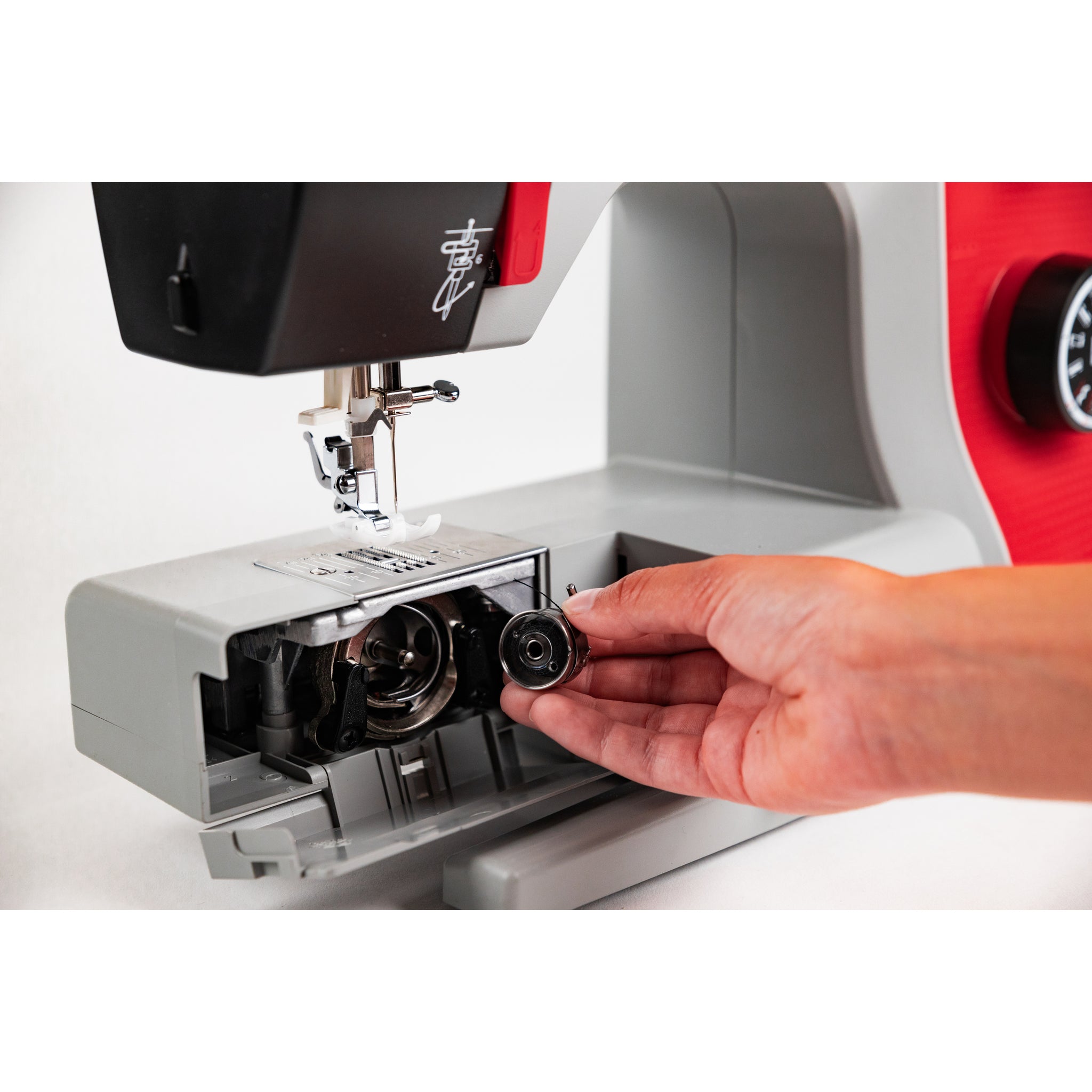 Ďalšie skvelé funkcie a príslušenstvoStroj má tiež kolk pre druhú hornú niť a podporuje tak šitie dvojihlou. Šitie s ním bude pohodlné aj vďaka plstenej podložke na držiak nite. Použiť môžete malé aj veľké cievky vďaka zarážke. Dostanete aj 13 cievok pre rôzne farby nití, vodič látky na jednoduchý priechod látkou a podperu na šitie džínsoviny. Jednoduchú údržbu zaistí skrutkovač v tvare L, páraček a štetec. S takýmto bohatým príslušenstvom budete pripravení na akýkoľvek šijací projekt, ktorý si predstavíte. |