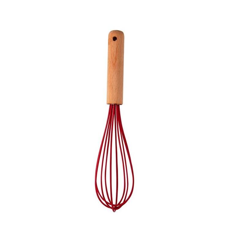 Užitočná šľahacia metla z červeného matného silikónu a bukového dreva vám pomôže pri príprave vašich obľúbených jedál. Svoje uplatnenie nájde napríklad pri varení alebo pečení , keď budete chcieť vyšľahať dokonalý krém alebo premiešať vajíčka na omeletu . Možno ich používať pri teplotách jedla do 210 °C . Praktický otvor na zavesenie zase zaistí, že bude vždy po ruke. Vďaka silikónovej časti potiahnutej nylonom je ideálny napríklad na nepriľnavé a smaltované povrchy . Bez problémov ju môžete umyť v umývačke . |