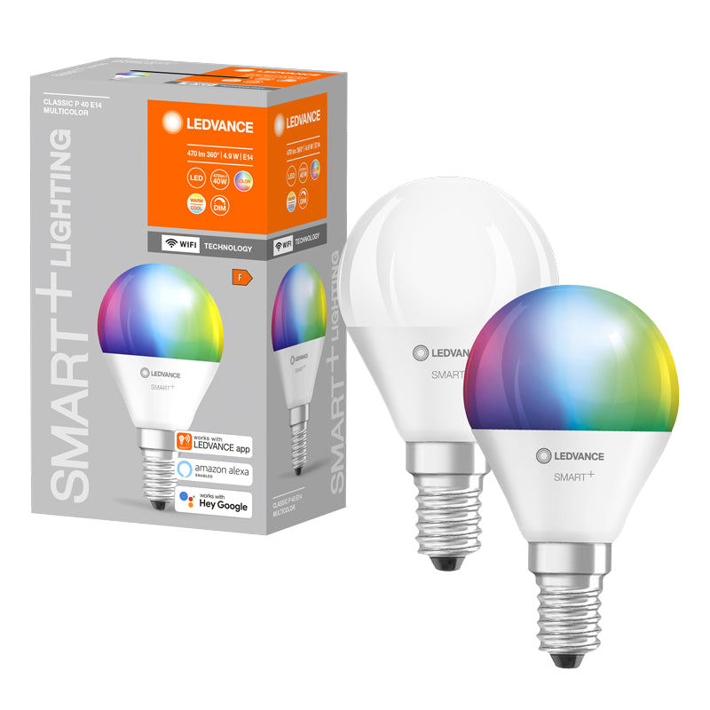 Smart žiarovkaTáto SMART LED žiarovka značky Ledvance je moderný svetelný zdroj, ktorý kombinuje chytré funkcie s vysokou energetickou účinnosťou. Táto stmievateľná žiarovka s päticou E14 a príkonom 4,9 W poskytuje svetlo s intenzitou 470 lm a poskytuje nielen klasické osvetlenie od teplej bielej farby po denné svetlo, ale aj farebné svetlo, ktoré si môžete meniť podľa nálady. Žiarovka je ovládateľná cez Wi-Fi pomocou mobilnej aplikácie alebo hlasových asistentov ako sú Google Assistant a Amazon Alexa. S energetickou triedou F a priemernou životnosťou 20 000 hodín prispieva k úsporám energie a ľahko sa integruje do existujúcich domácich sietí.