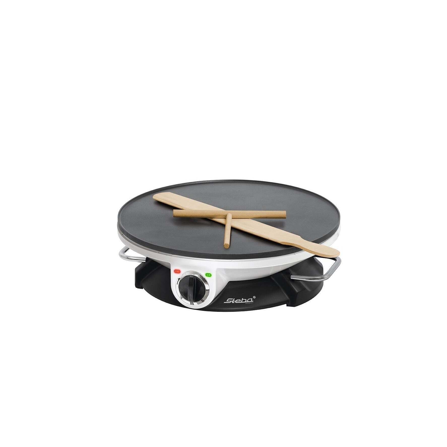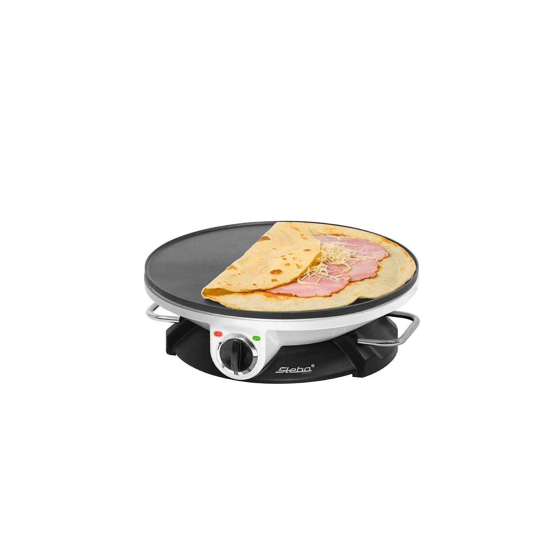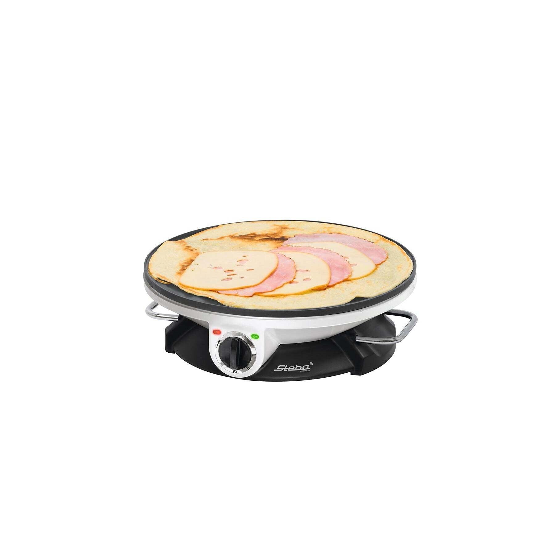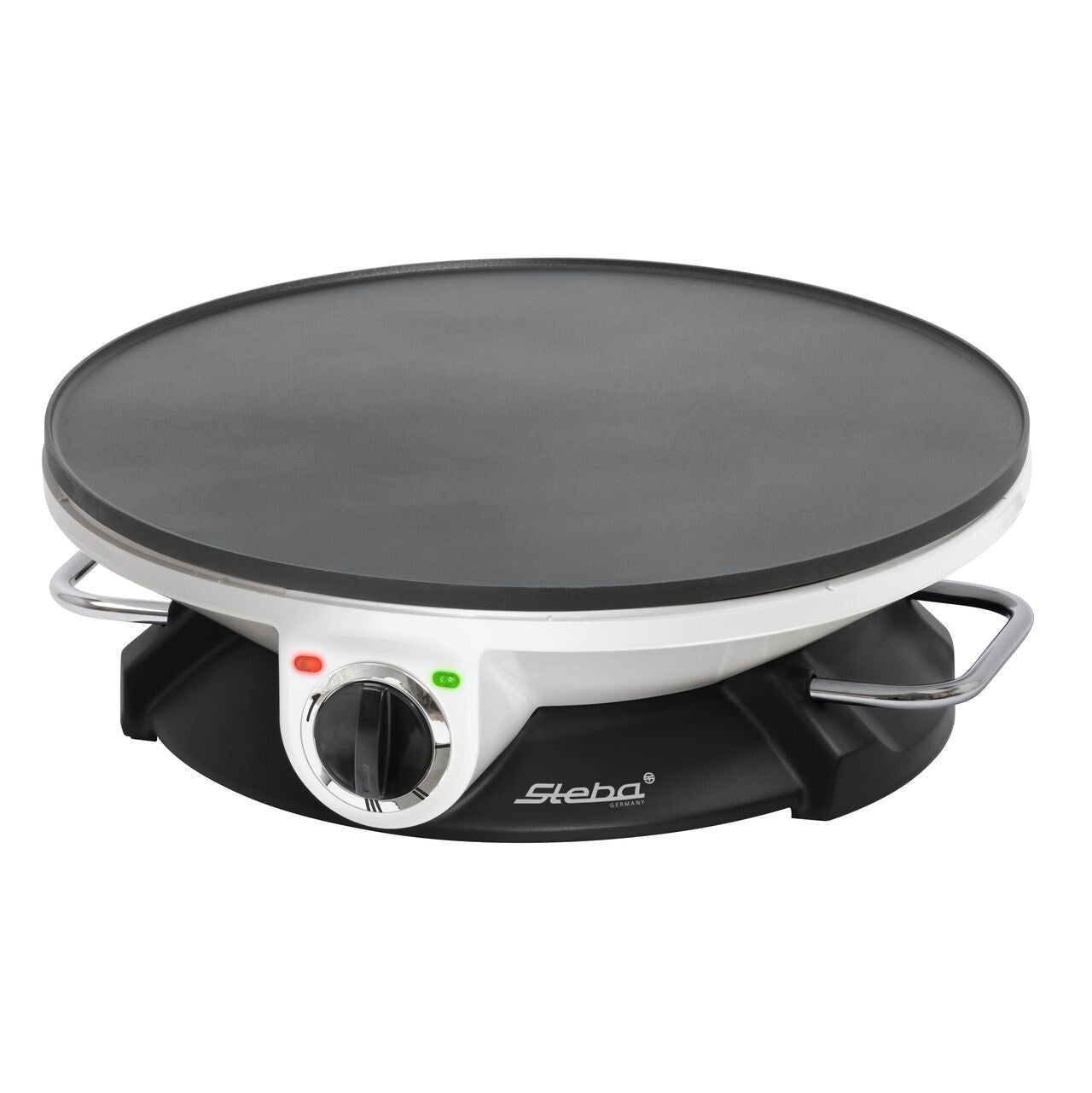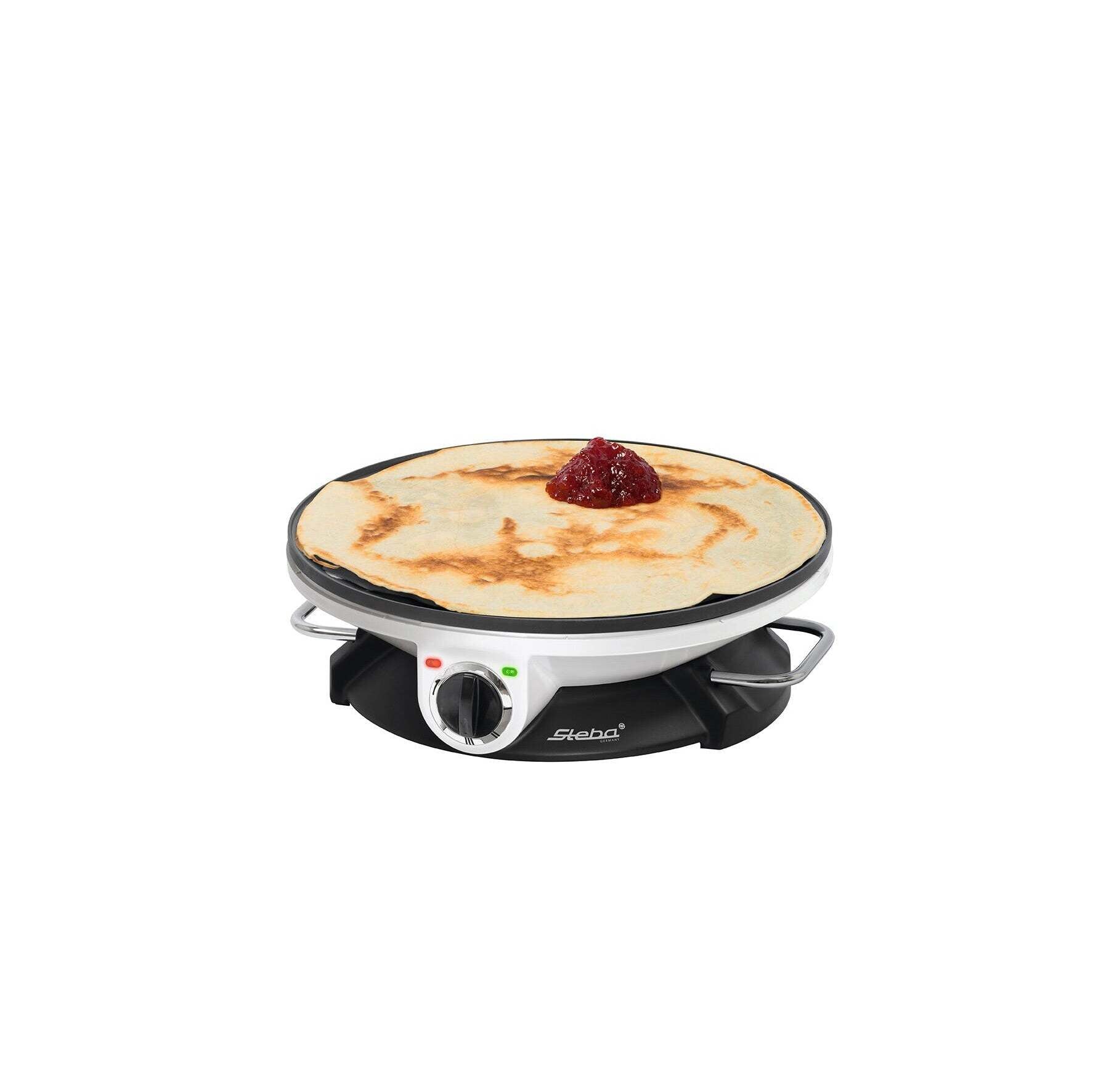 S profesionálnym palacinkovačom od spoľahlivého nemeckého výrobcu Steba si budete môcť kedykoľvek pripraviť tenké francúzske palacinky na slaný aj sladký spôsob. Zariadenie je vyrobené v elegantnej, modernej podobe s povrchovou úpravou z bieločierneho plastu. Má príkon 1200 W a disponuje nastaviteľnou reguláciou teploty pre perfektné opečenie z oboch strán. Súčasťou palacinkovača je odnímateľná nepriľnavá teflónová doska, drevený roztierač a drevená špachtľa. Správne napájanie udržiava praktická kontrolka. Pre ľahšie uskladnenie vám bude k dispozícii priehradka pre namotanie napájacieho kábla. S týmto palacinkovačom si budete môcť dopriať francúzske palacinky s priemerom 32 cm.