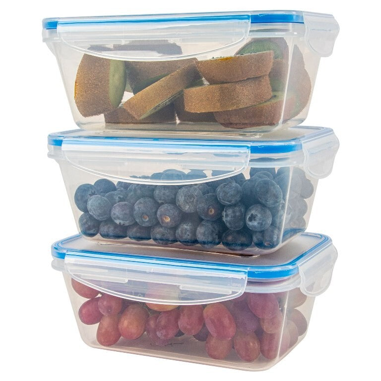 Súprava plastových dózSúprava plastových dóz Classbach obsahuje tri nádoby vždy o rozmere 19,5 x 13 x 7,6 cm a objeme 1000 ml pre všestranné využitie. Nádoby sú úplne ideálne na zmrazovanie, ohrievanie, skladovanie a prepravu potravín. Disponujú tesným štvorcestným zatváraním Click & Safe s vysoko kvalitným silikónovým tesnením. Nádoby sú maximálne odolné voči teplotám v rozmedzí od -40 °C do +110 °C, pričom potešia aj jednoduchou manipuláciou a skladovaním, kedy ich možno skladať do seba pre maximálnu úsporu miesta. |